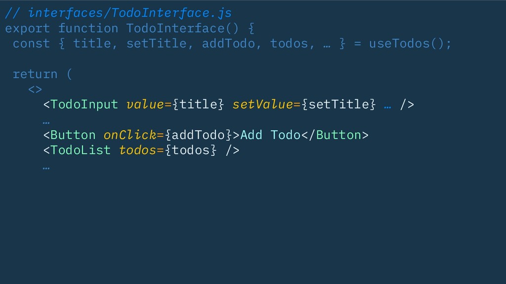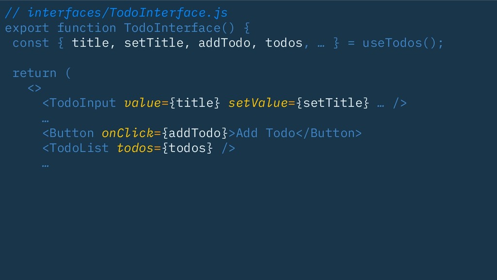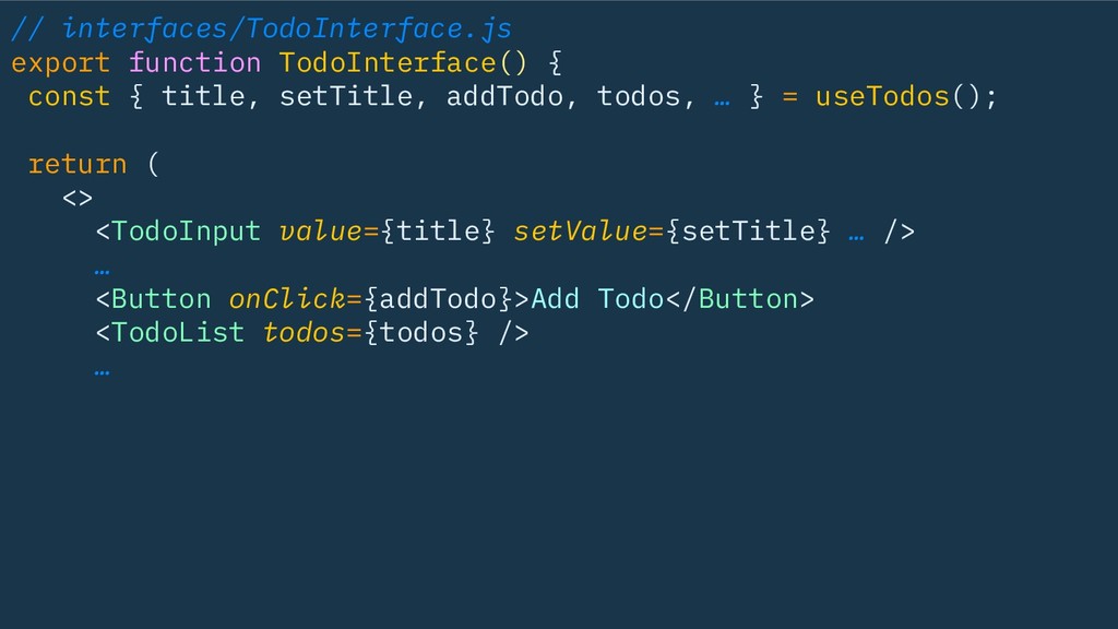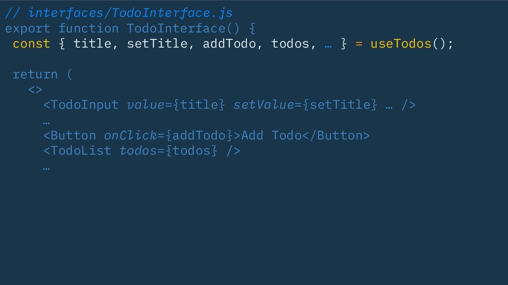 // interfaces/TodoInterface.js export function TodoInterface() { const { title, setTitle,