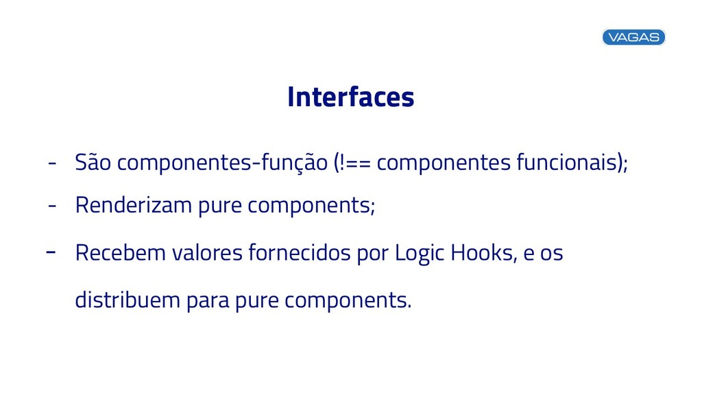 Talk @ React Conf Brasil. Logic Hooks, Interfaces, Pure Components