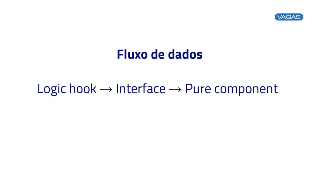 Logic hook → Interface → Pure component Fluxo de dados