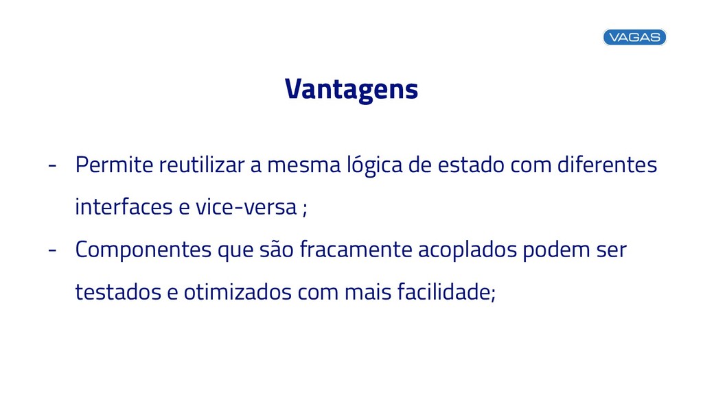 Vantagens - Permite reutilizar a mesma lógica de estado com