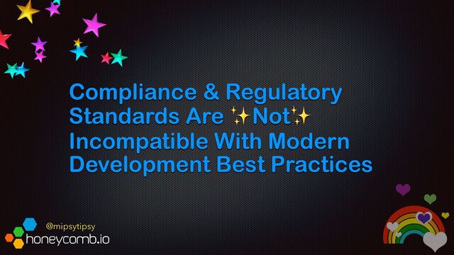 Everybody knows that modern development practices include things like testing in production, continuous delivery, observability driven development, and separating deploys from releases using feature flags. Yet far too many times I've heard engineers from highly regulated industries complain that they have to follow a bunch of security theater due to regulations and standards.