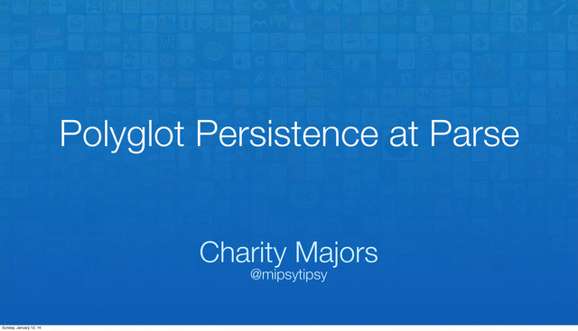per rs • Running 2.4.6 - 2.4.8 (current) • Over 1M collections • Over 200k schemas • Used for structured mobile app data, real-time query analysis, backend billing & analytics, central routing • Fully instrumented provisioning with chef Sunday, January 12, 14