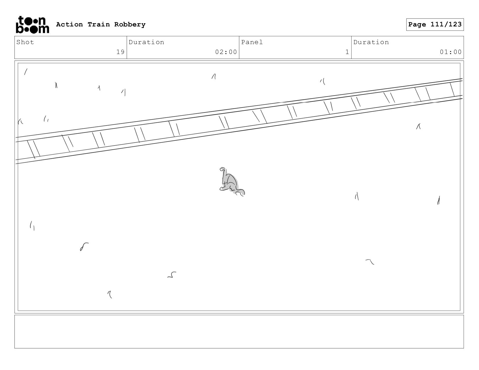 Shot 19 Duration 02:00 Panel 1 Duration 01:00 Action Train