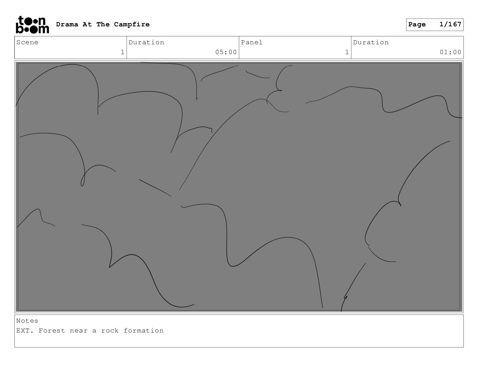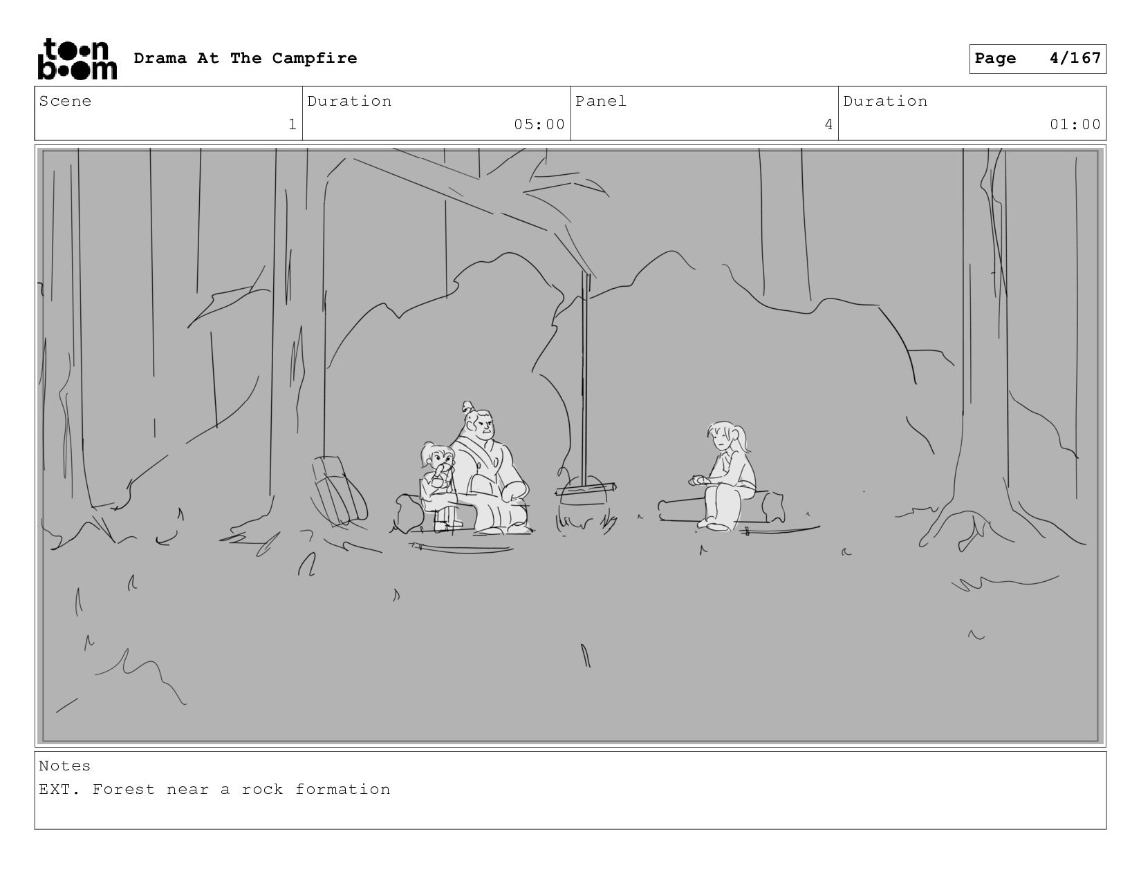 Scene 1 Duration 05:00 Panel 4 Duration 01:00 Notes EXT.