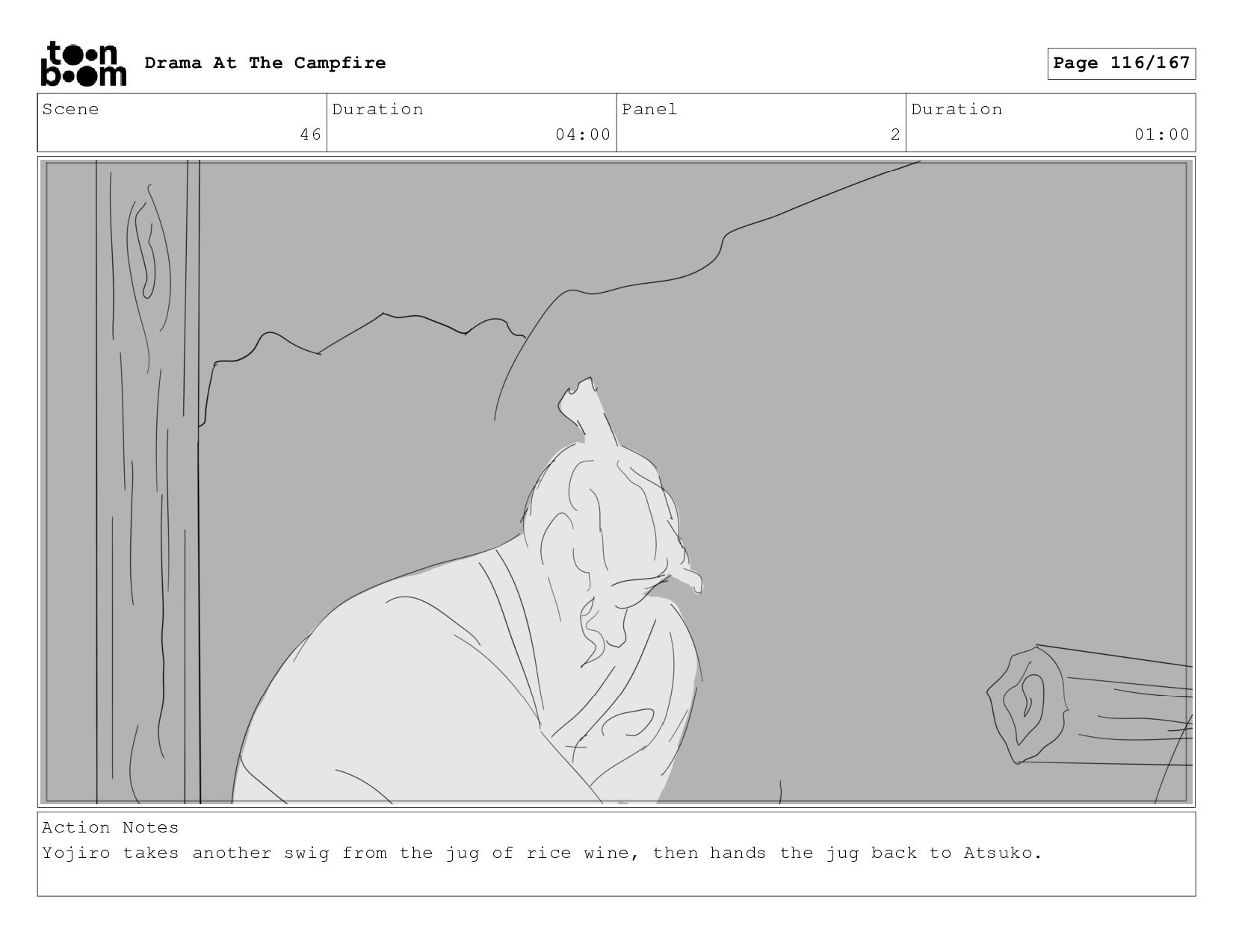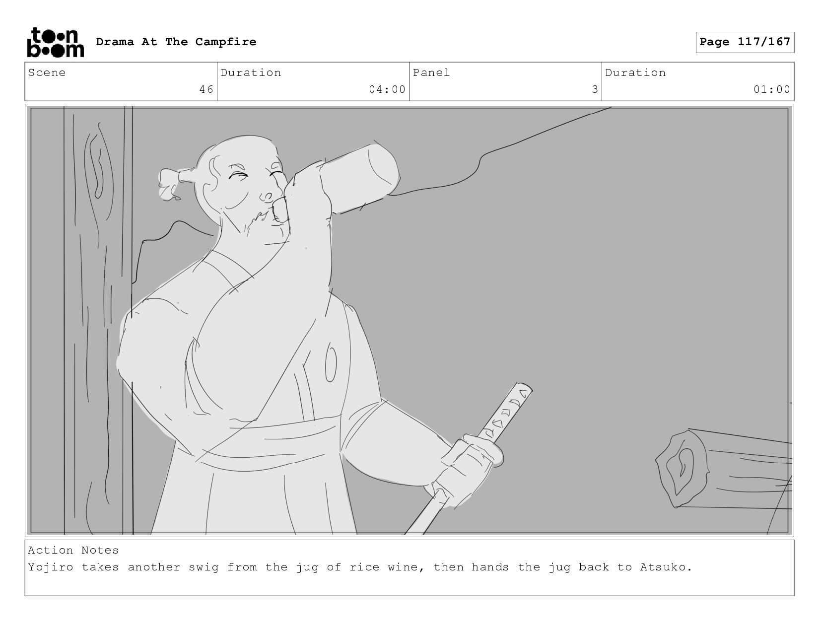 Scene 46 Duration 04:00 Panel 4 Duration 01:00 Action Notes