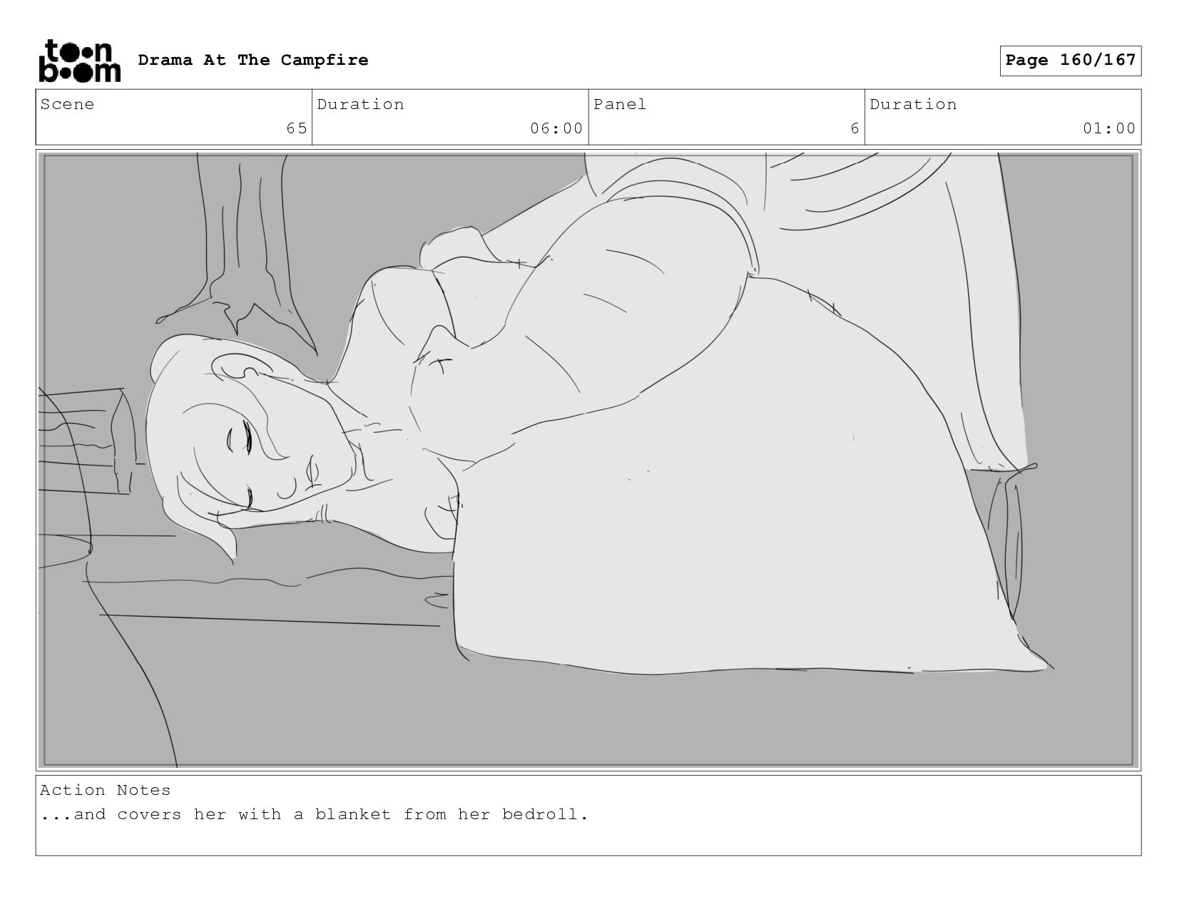 ...and covers her with a blanket from her bedroll. Drama At The Campfire Page 160/167