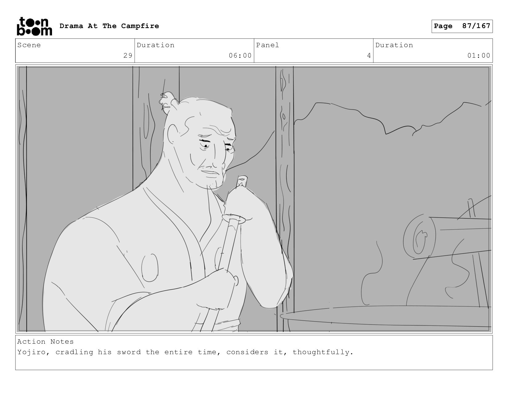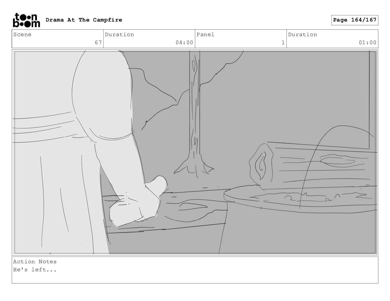 Scene 67 Duration 04:00 Panel 1 Duration 01:00 Action Notes