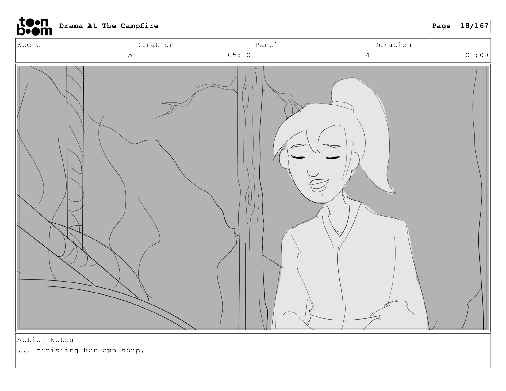 Scene 3 Duration 04:00 Panel 4 Duration 01:00 Action Notes