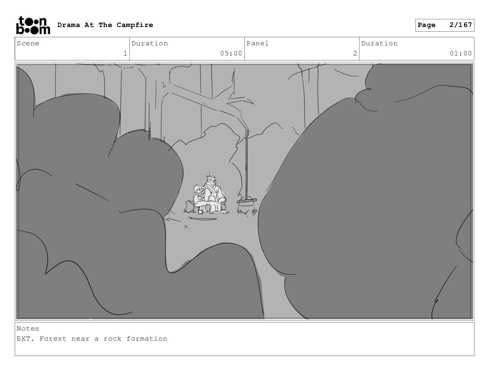 Scene 1 Duration 05:00 Panel 2 Duration 01:00 Notes EXT.