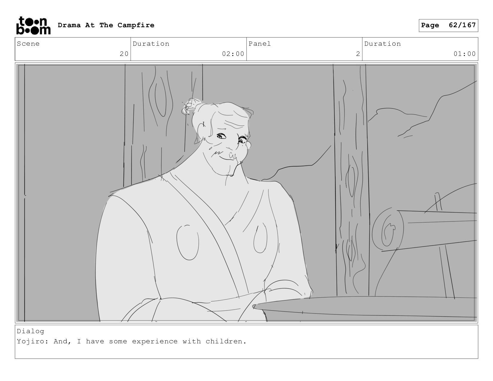 Scene 58 Duration 02:00 Panel 1 Duration 01:00 Dialog Yojiro: