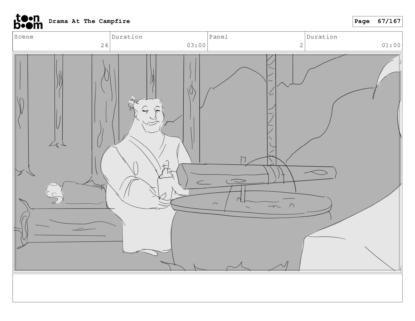 Scene 67 Duration 04:00 Panel 2 Duration 01:00 Action Notes