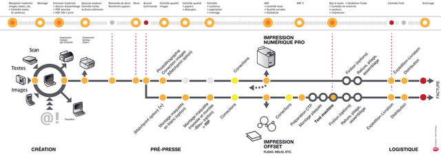 Finition (options) Impression maison (jet d’encre) Impression bureau (laser) Transfert Images @! Reliure, pliage, assem blage Finition (options) Reliure, pliage, assem blage Expédition-Livraison Distribution Expédition-Livraison Distribution Réception matériels: images, textes, etc. > Contrôle textes et contenus Montage Emission matériels: > dossier d’assemblage > PDF preview > PDF HD > print Contrôle qualité images Contrôle qualité > papiers > découpes Contrôle > contenus > pagination > montage Epreuve couleurs Contrôle tailles et divers éléments Demande de devis Recherche papiers Devis Accord Commande BAT > Contrôle total > Qualité variable > Validation Bon à rouler > Validation finale > Contrôle en machine > couleurs > impression BAT 2 Archivage Contrôle final CRÉATION PRÉ-PRESSE LOGISTIQUE Test m achine Photolithographie C orrection im ages (M atchprint option) C orrections FACTURE C orrections C orrections (+) M ontage plaques M ontage m aquette en blanc (option) M ontage m aquette im posée et m ontée «Bleu» (option) Préparation C TP > RIP (M atchprint option) Conception: Pierre Chassany