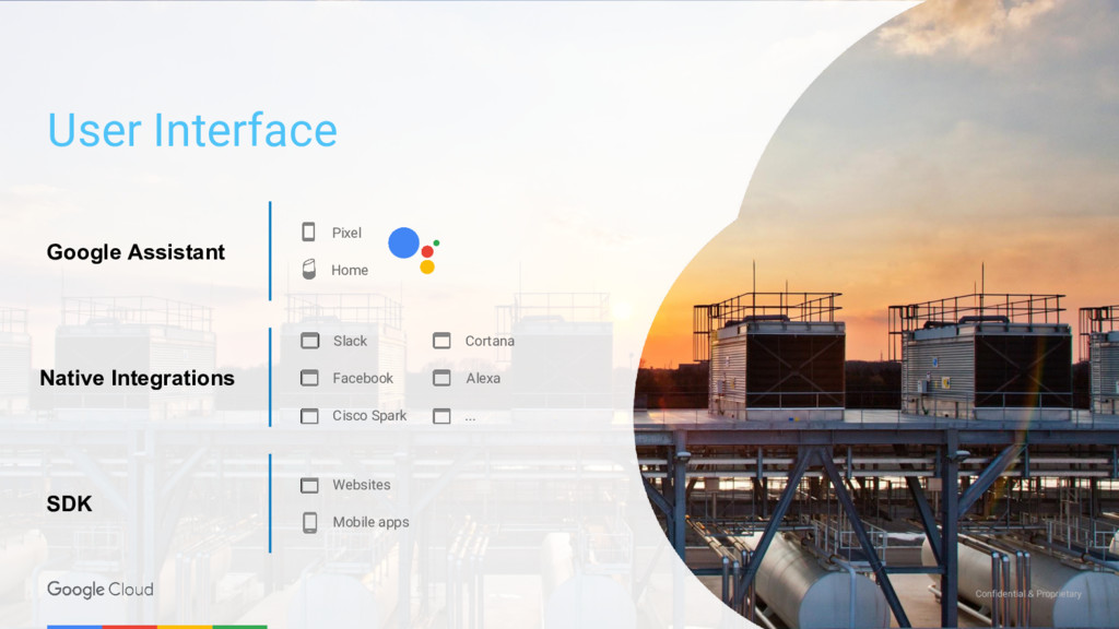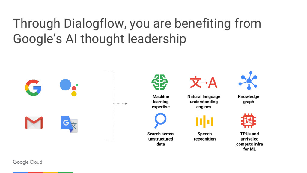 Machine learning expertise Natural language understanding engines Knowledge graph Search across unstructured data Speech recognition TPUs and unrivaled compute infra for ML