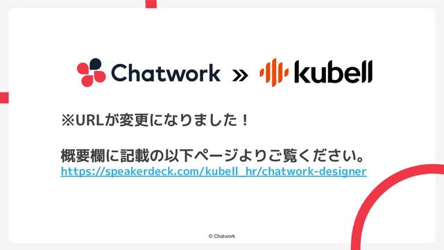 【NEW】7/1より株式会社kubellに社名を変更しました。 新しい資料は以下に移行しています。(2024年7月以降) https://speakerdeck.com/kubell_hr/chatwork-designer