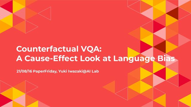 Counterfactual VQA: A Cause-Effect Look at Language Bias 21/08/16 PaperFriday,