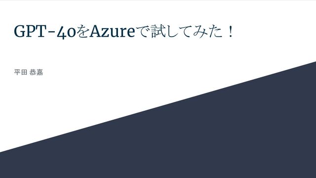 2024年06月13日 (木) に 開催されたAzure Tech Lab@Microsoft Base Kobe での登壇資料です。