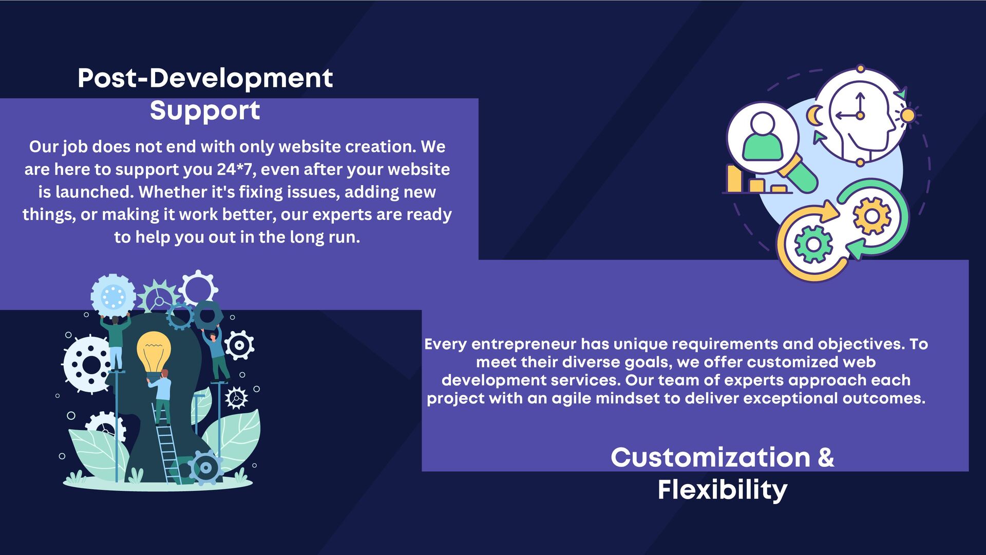 Our web development services empower your online presence with tailored solutions. We specialize in creating responsive, user-friendly websites and web applications. Our team combines cutting-edge technologies with a creative approach to deliver websites that not only meet your functional requirements but also engage your audience effectively. Whether it's e-commerce, portfolio sites, or custom web applications, we ensure a seamless and visually appealing user experience. From concept to deployment, we prioritize client collaboration, ensuring your vision is translated into a digital reality. With a focus on innovation, our web development services extend beyond just coding. We offer comprehensive solutions, including UI/UX design, backend development, database integration, and ongoing maintenance. Our team stays abreast of industry trends to implement the latest technologies, ensuring your website remains competitive and adaptable to evolving digital landscapes. We prioritize client satisfaction through transparent communication, timely deliveries, and a commitment to quality. Whether you need a brand-new website, a revamp of an existing one, or scalable web applications, our dedicated team is ready to transform your ideas into functional and visually appealing digital solutions. Partner with us for a web presence that not only meets but exceeds your expectations.