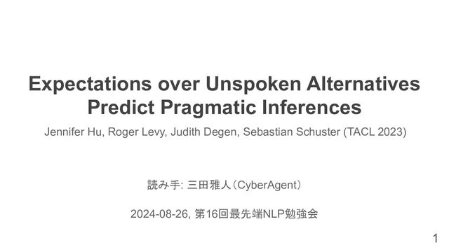 Expectations over Unspoken Alternatives Predict Pragmatic Inferences 1 2024-08-26, 第16回最先端NLP勉強会