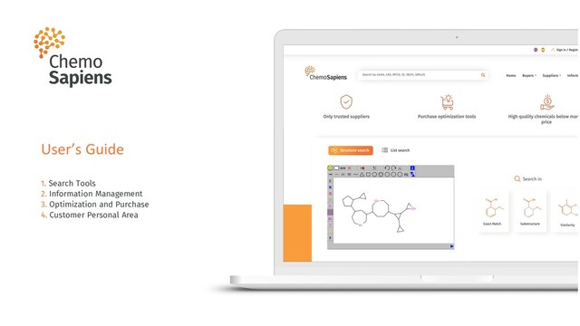 molécula Gastos de envío A 100 € 50 € A 120 € B 50 € 50 € A 70 € 50 € C 150 € 50 € A 160 € D 200 € 50 € D 200 € 50 € E 100 € 50 € E 100 € 50 € Total 600 € 250 € Total 650 € 150 € Optimization System Otras plataformas TOTAL: 850 € TOTAL: 800 € (Ahorro de 50€) Platform optimization algorithms minimize the shipping cost impact in the final purchase price. For example, if a buyer have chosen 5 chemicals out of 5 different suppliers (other platforms table), that is the cheapest combination excluding shipping charges (only visible once you are in the cart/ or check out screen). At this point, the platform calculates all possible supplier combinations, including shipping charges. Therefore, as you can see in the optimized purchase (orange table), although compounds price is 50€ more expensive, shipping charges is 100 cheaper (since the 3 compounds are sourced from same supplier).