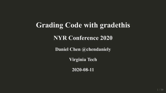 user_answer, env) { form_result <- rlang::eval_tidy( formula[[2]], data = list(.result = user_answer, . = user_answer), env = env ) return(form_result) } switch(condition$type, "formula" = evaluate_condi_formula(condition$x, learnr_args$last_value, learnr_args$envir_prep "function" = evaluate_condi_function(condition$x, learnr_args$last_value), "value" = evaluate_condi_value(condition$x, learnr_args$last_value) ) @chendaniely NYR Conference 2020 https://github.com/chendaniely/rstatsnyc_2020-learnr_gradethis 37 / 39
