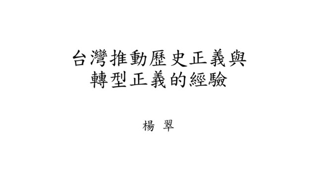 台灣推動歷史正義與 轉型正義的經驗 楊 翠