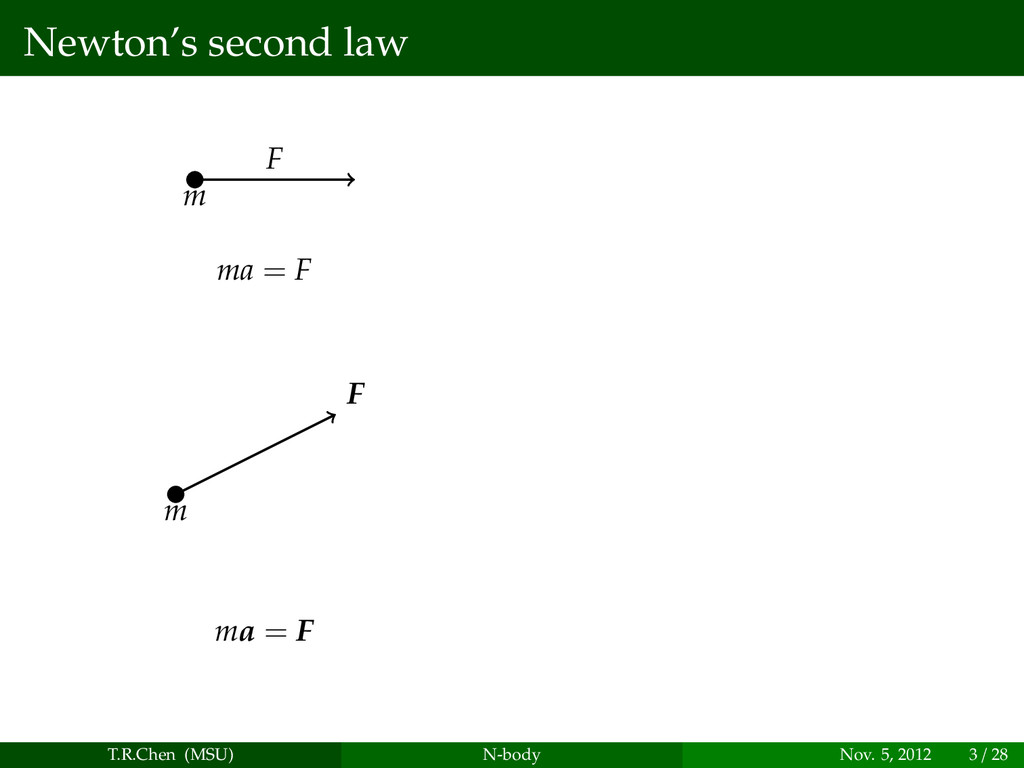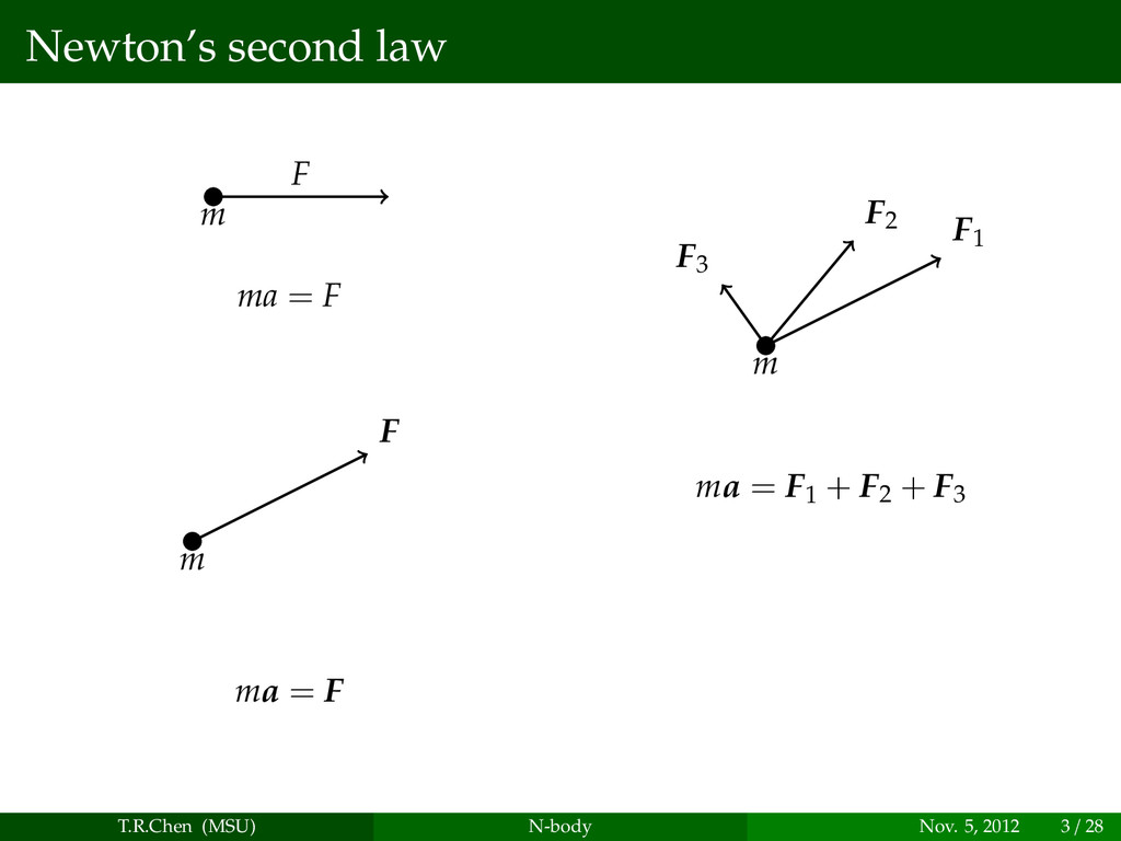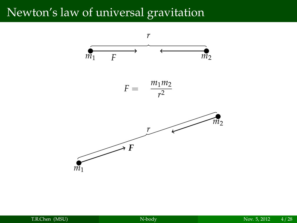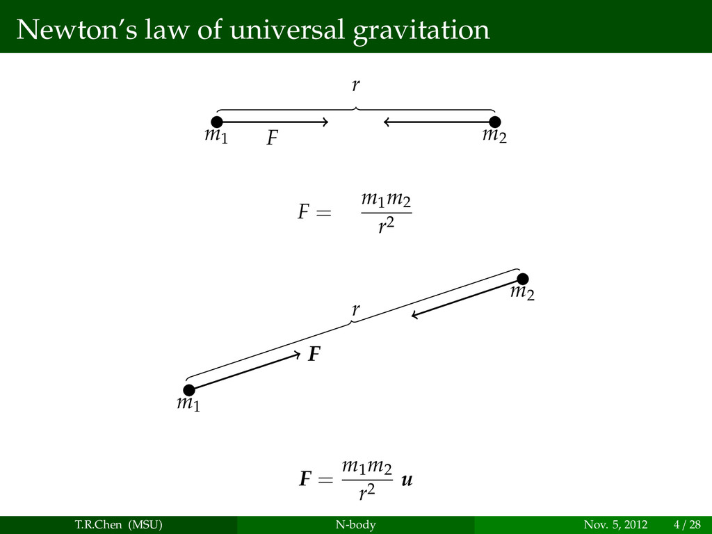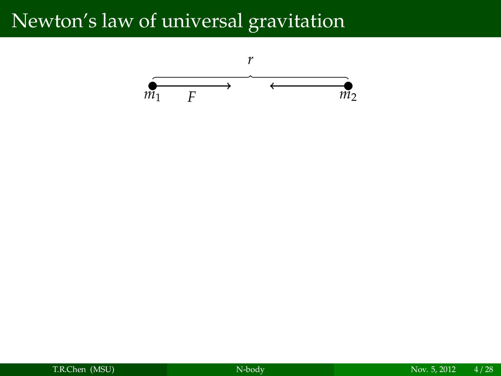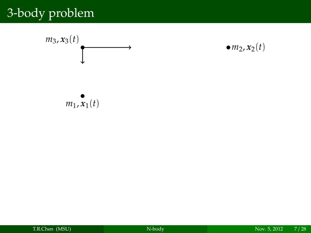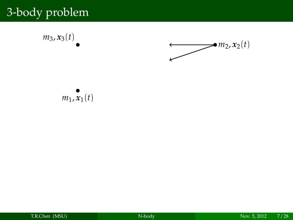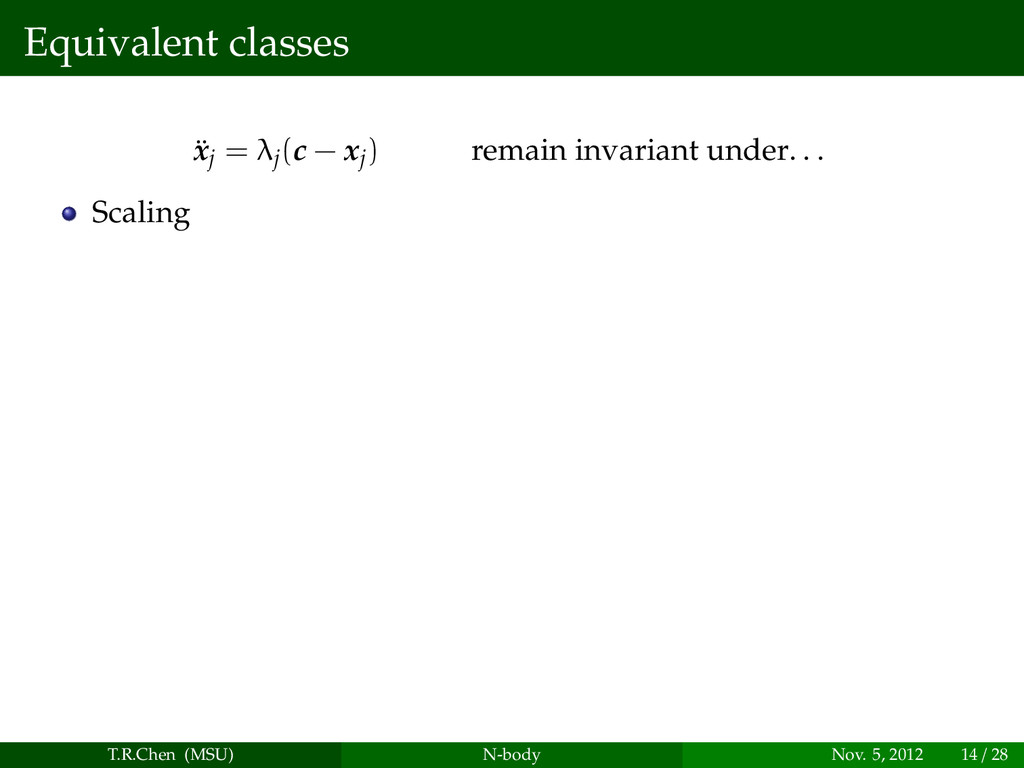 . . . , zm) = P1(z1, . . . , zm) . . . Pm(z1, . . . , zm) finite? If yes, then we have the finiteness of planar central configurations. Tropism: . . . P(z1, . . . , zm) = 0 has tropisms no tropisms =⇒ Finite number of solutions T.R.Chen (MSU) N-body Nov. 5, 2012 25 / 28