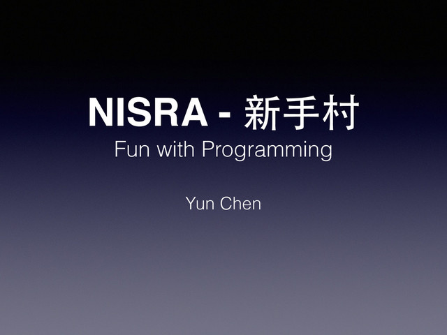 NISRA - 新⼿手村 Yun Chen Fun with Programming