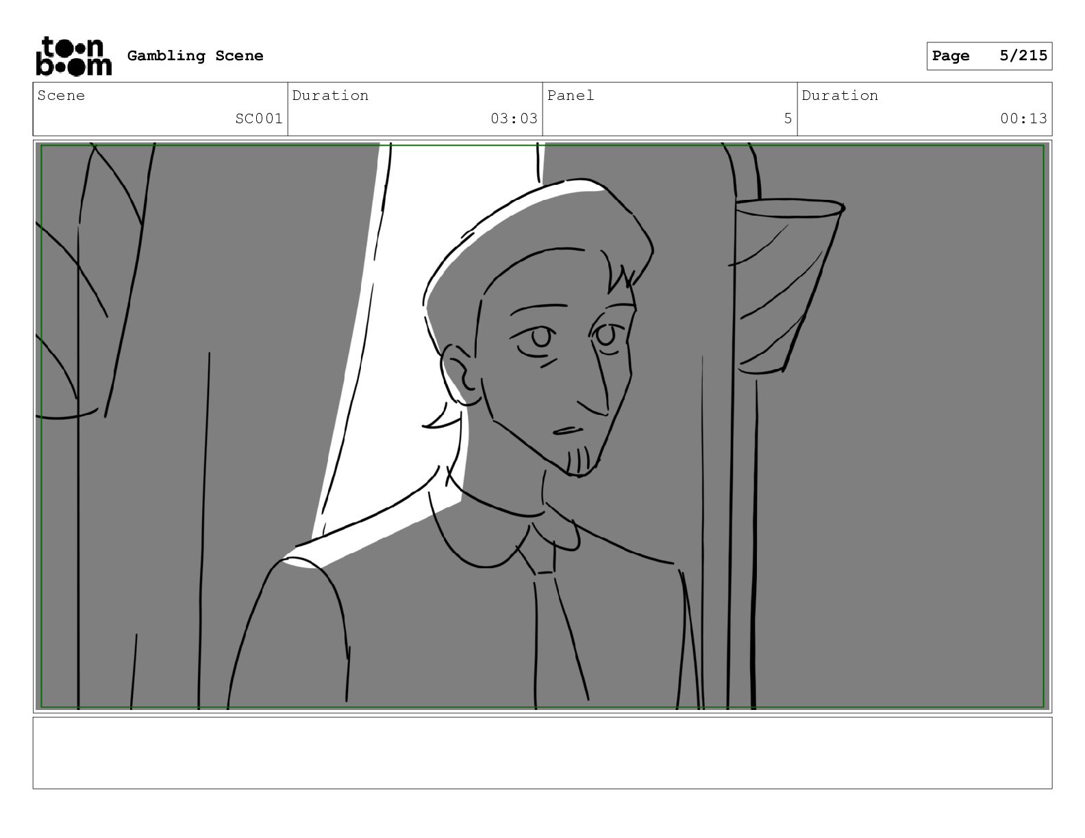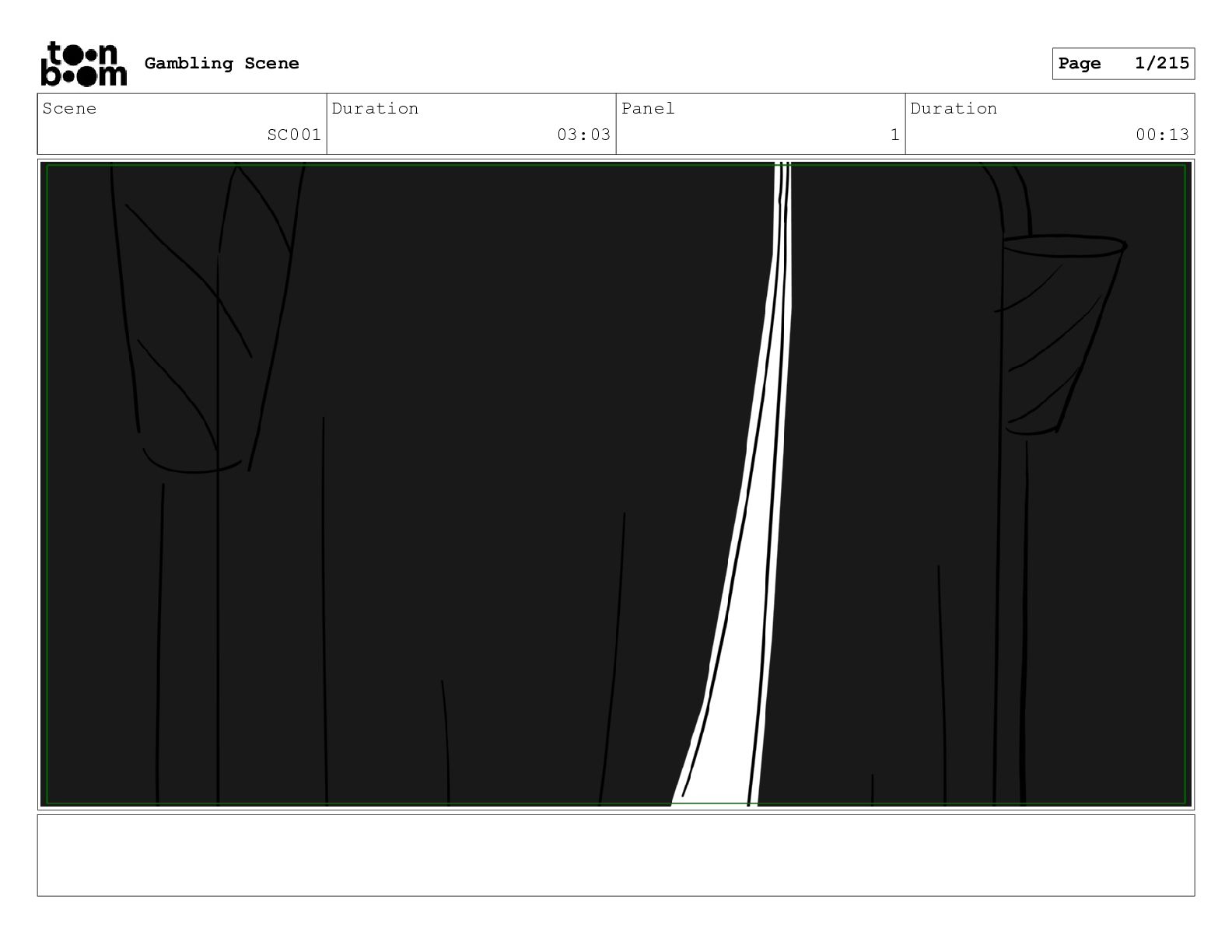 Scene SC001_A Duration 03:23 Panel 1 Duration 00:13 Gambling Scene