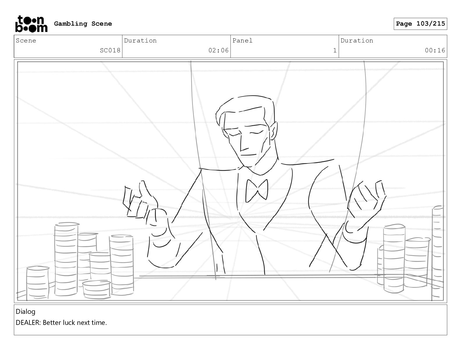 Scene SC024 Duration 03:07 Panel 1 Duration 00:11 Gambling Scene
