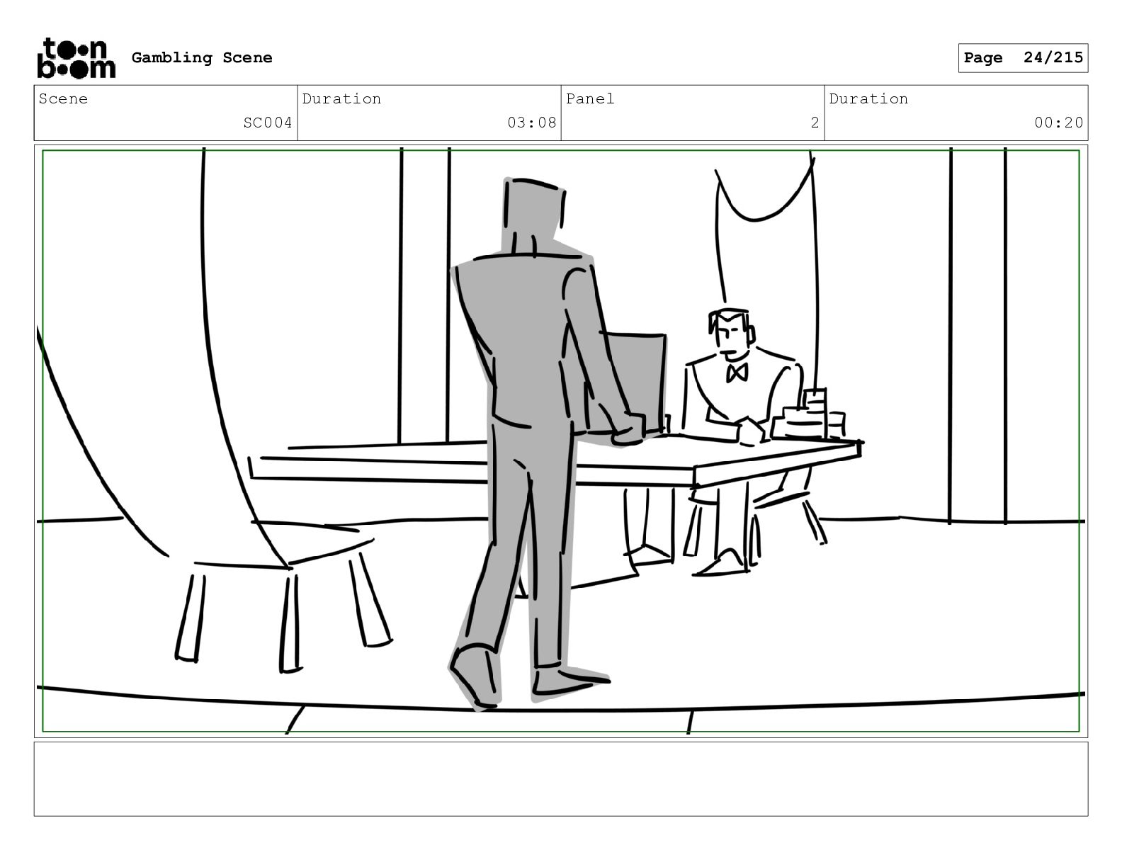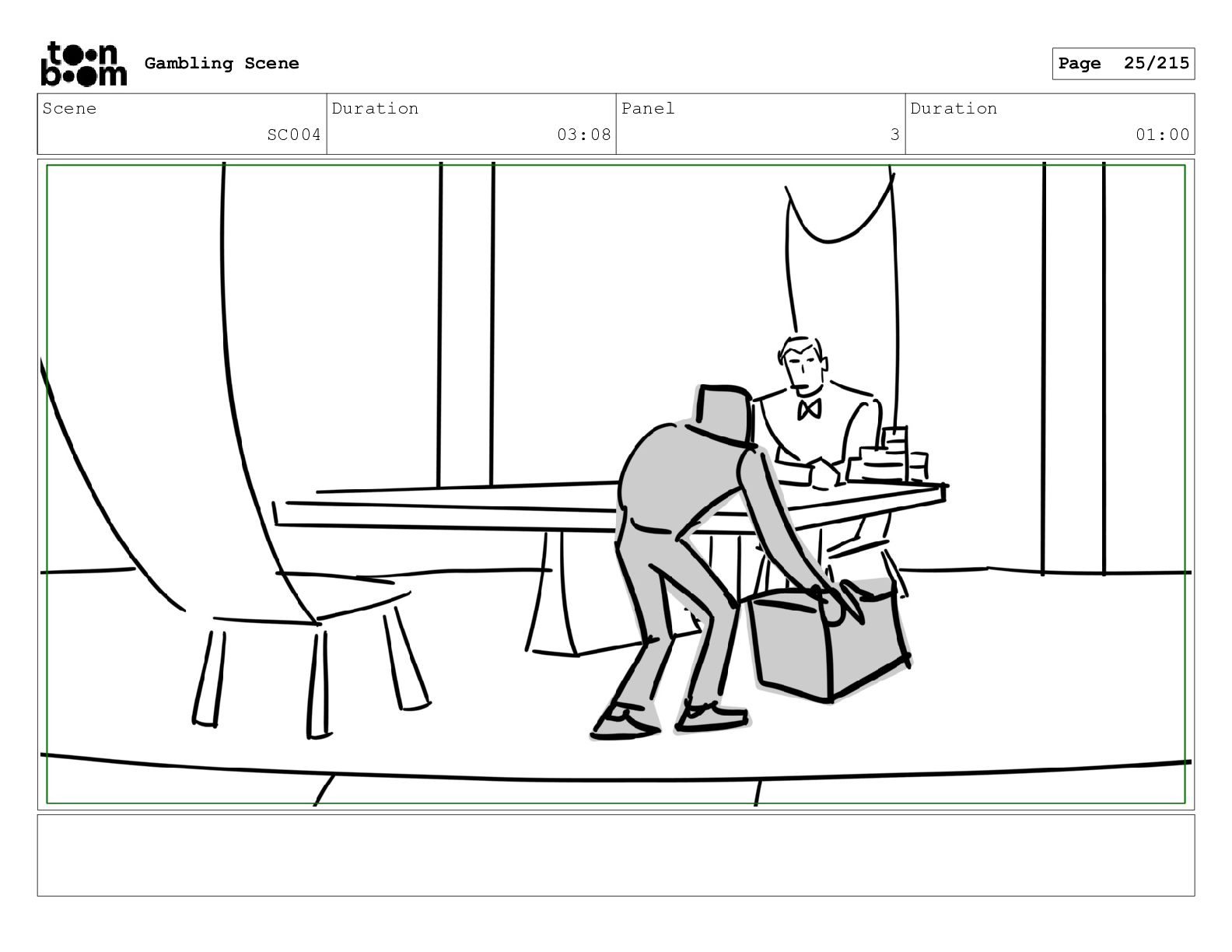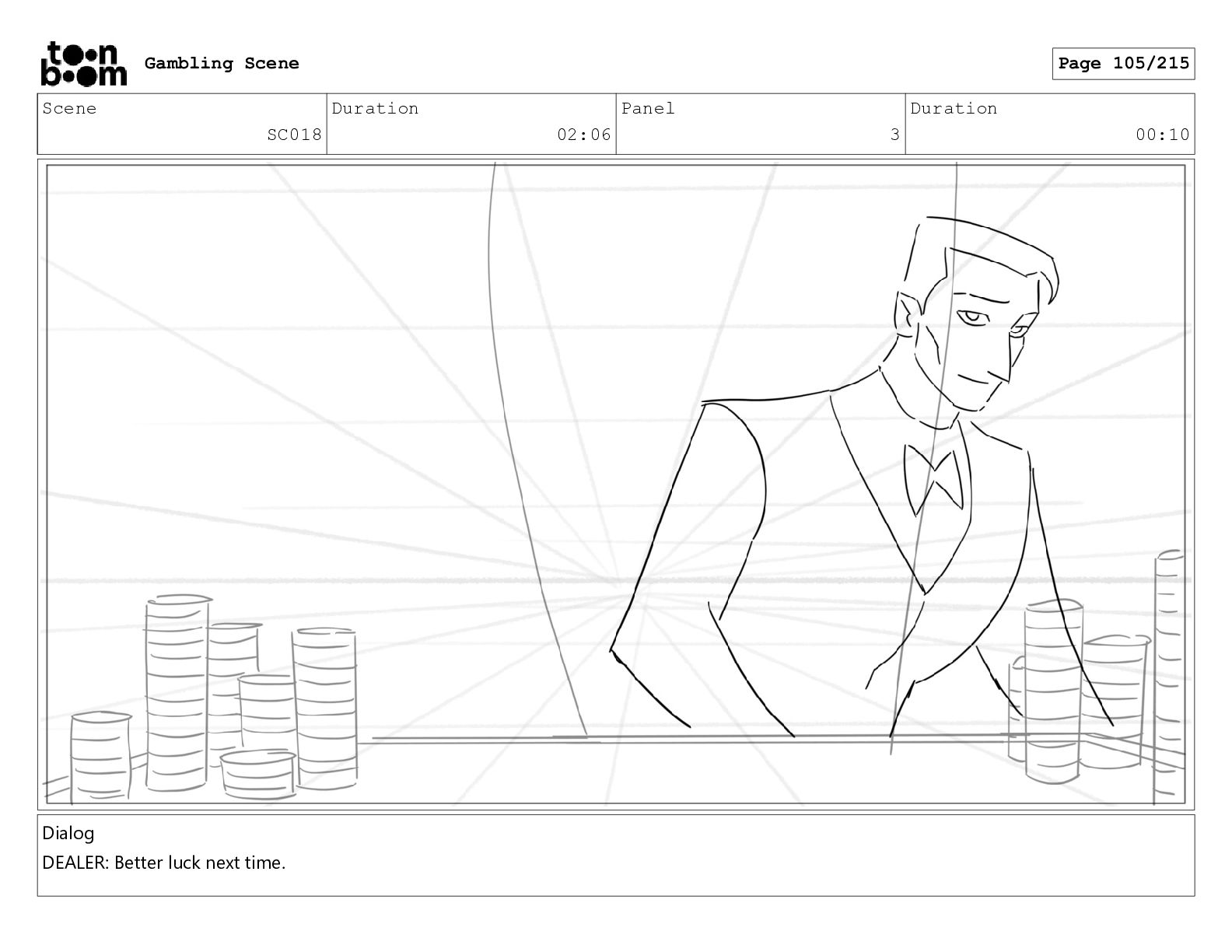 Scene SC001_A Duration 03:23 Panel 3 Duration 00:10 Gambling Scene