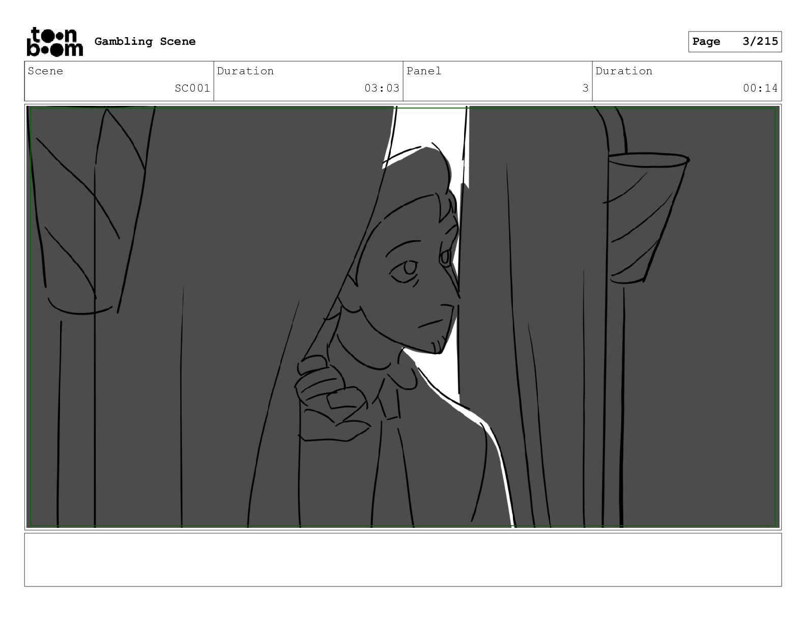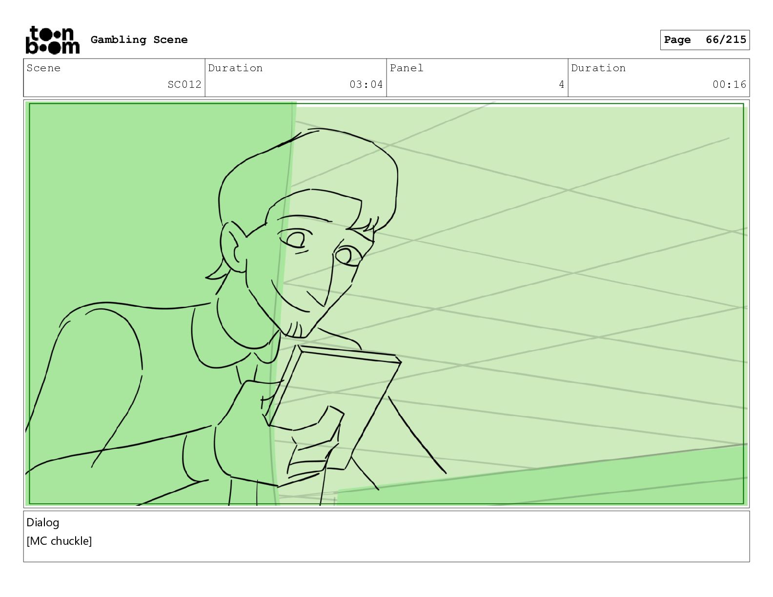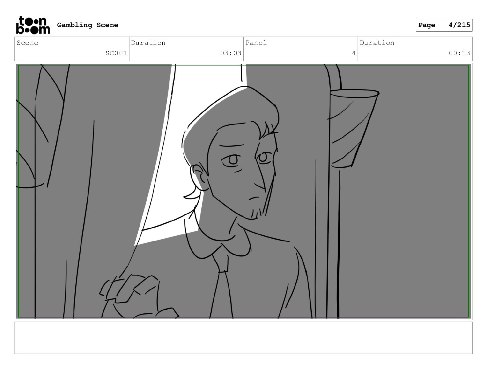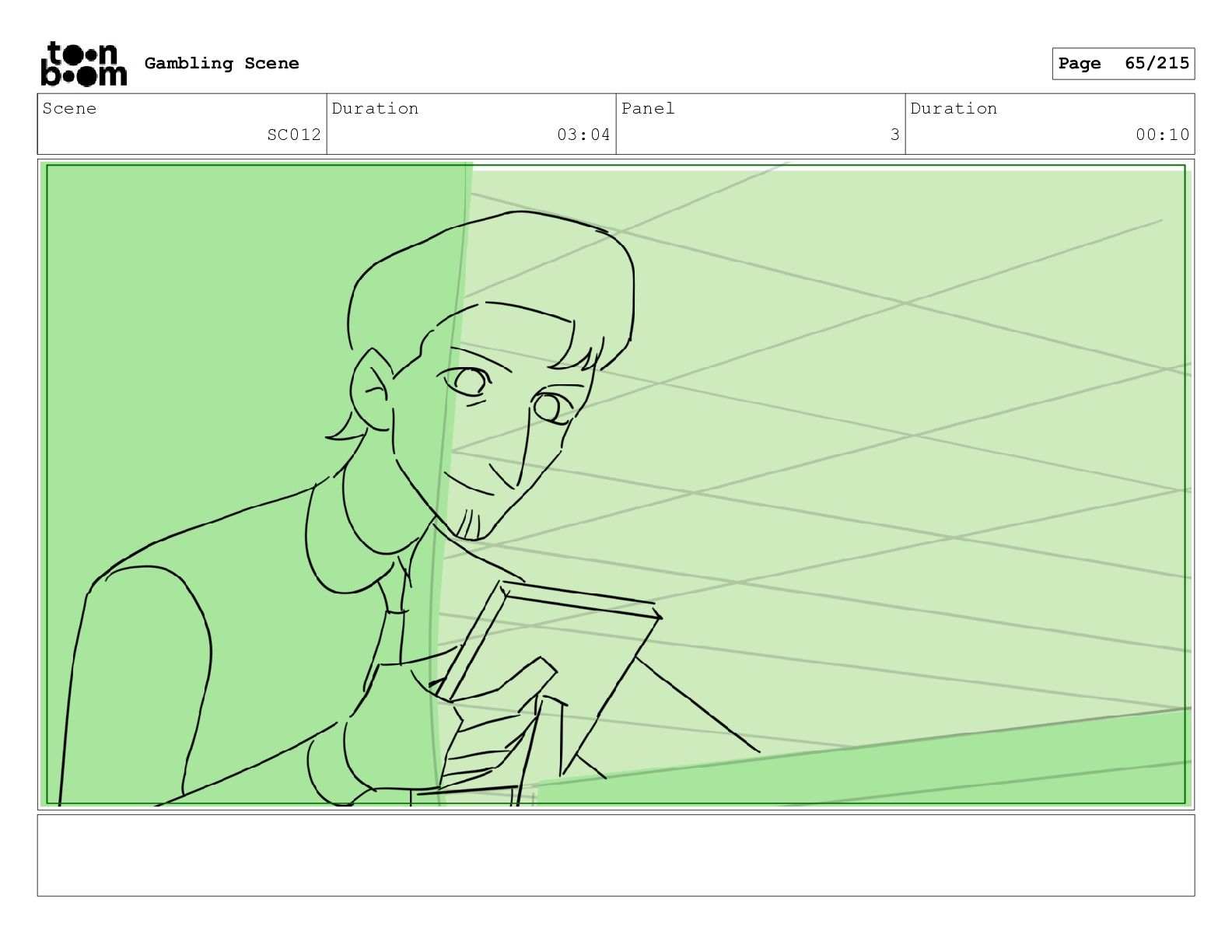 Scene SC001_A Duration 03:23 Panel 3 Duration 00:10 Gambling Scene