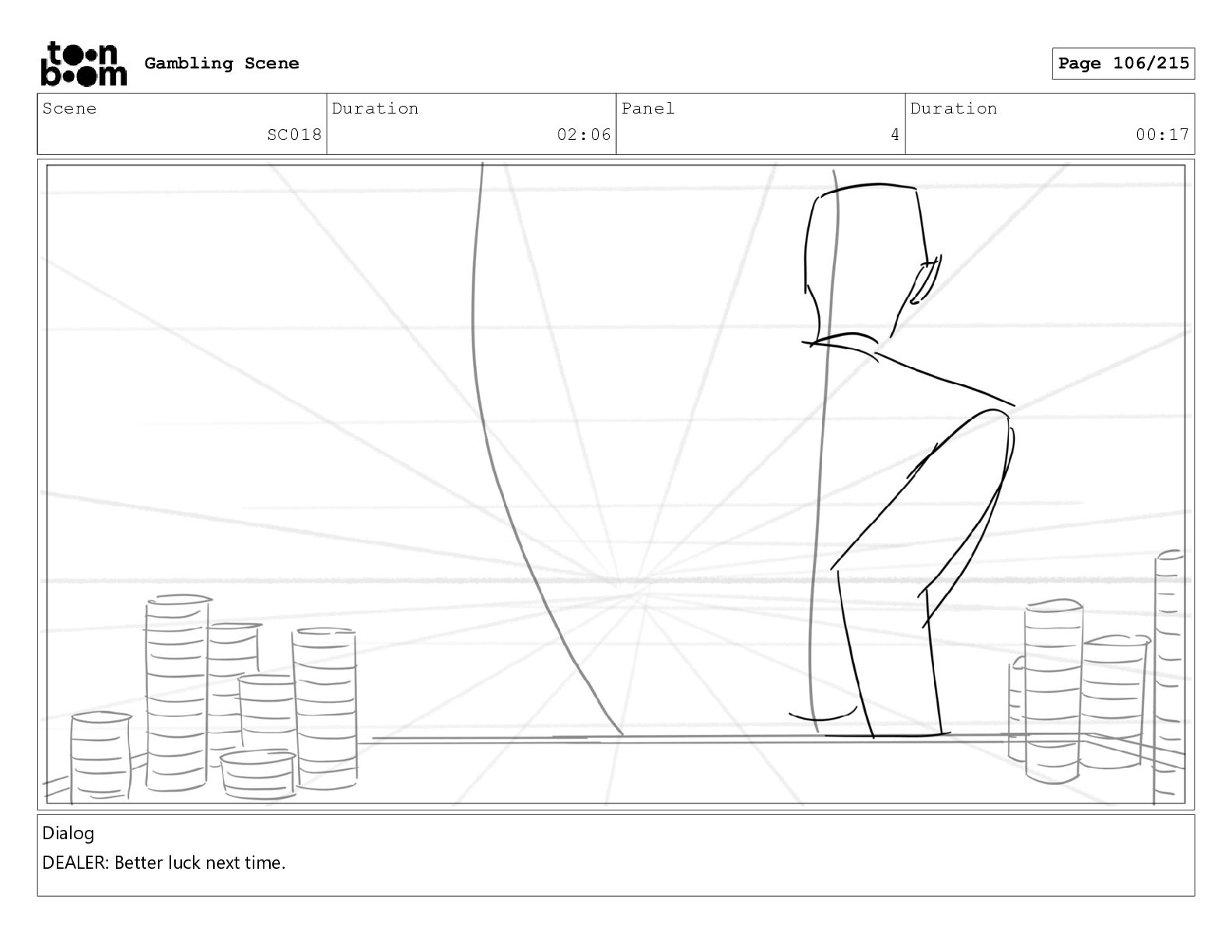 Scene SC026 Duration 06:13 Panel 8 Duration 00:05 Gambling Scene