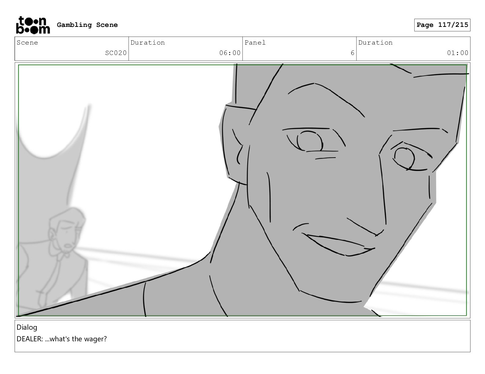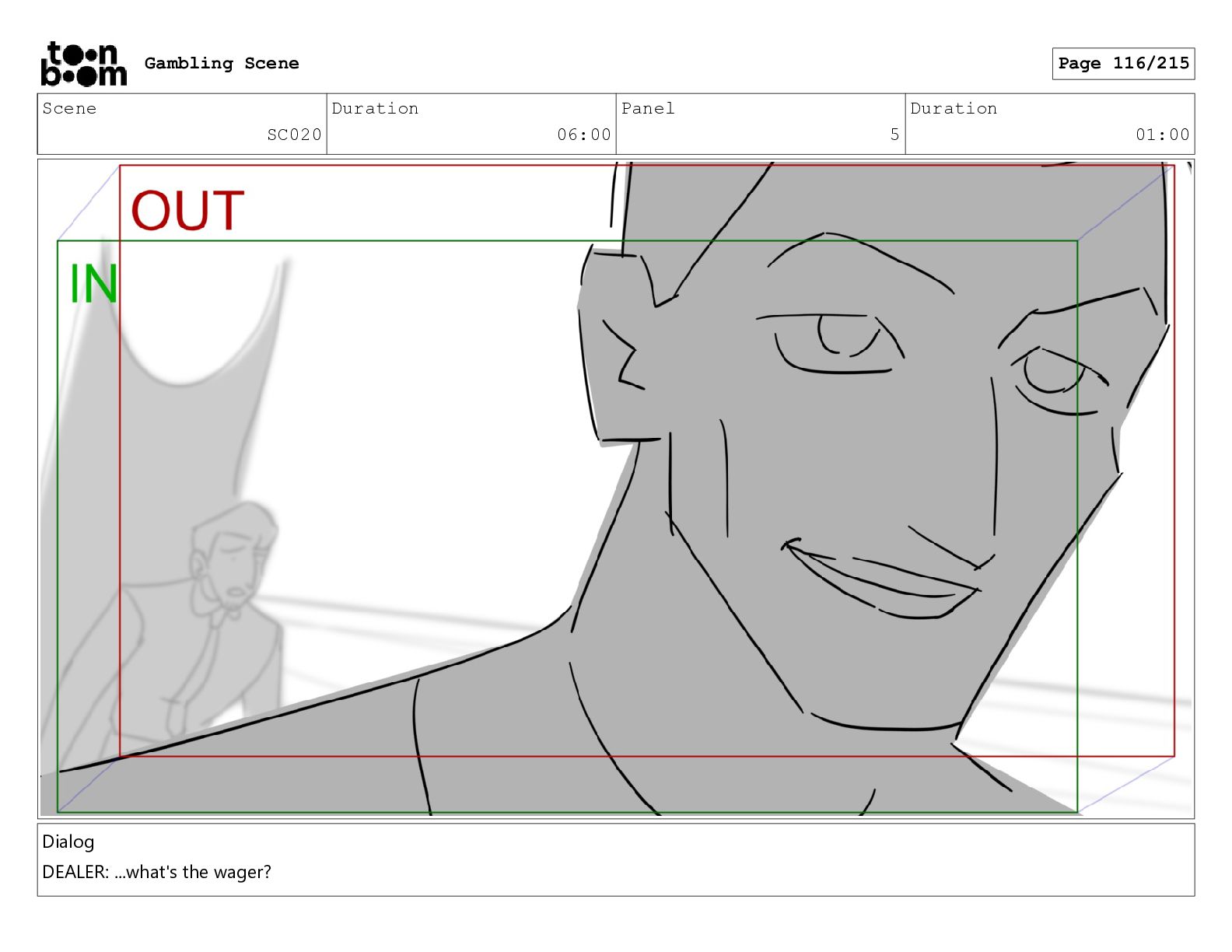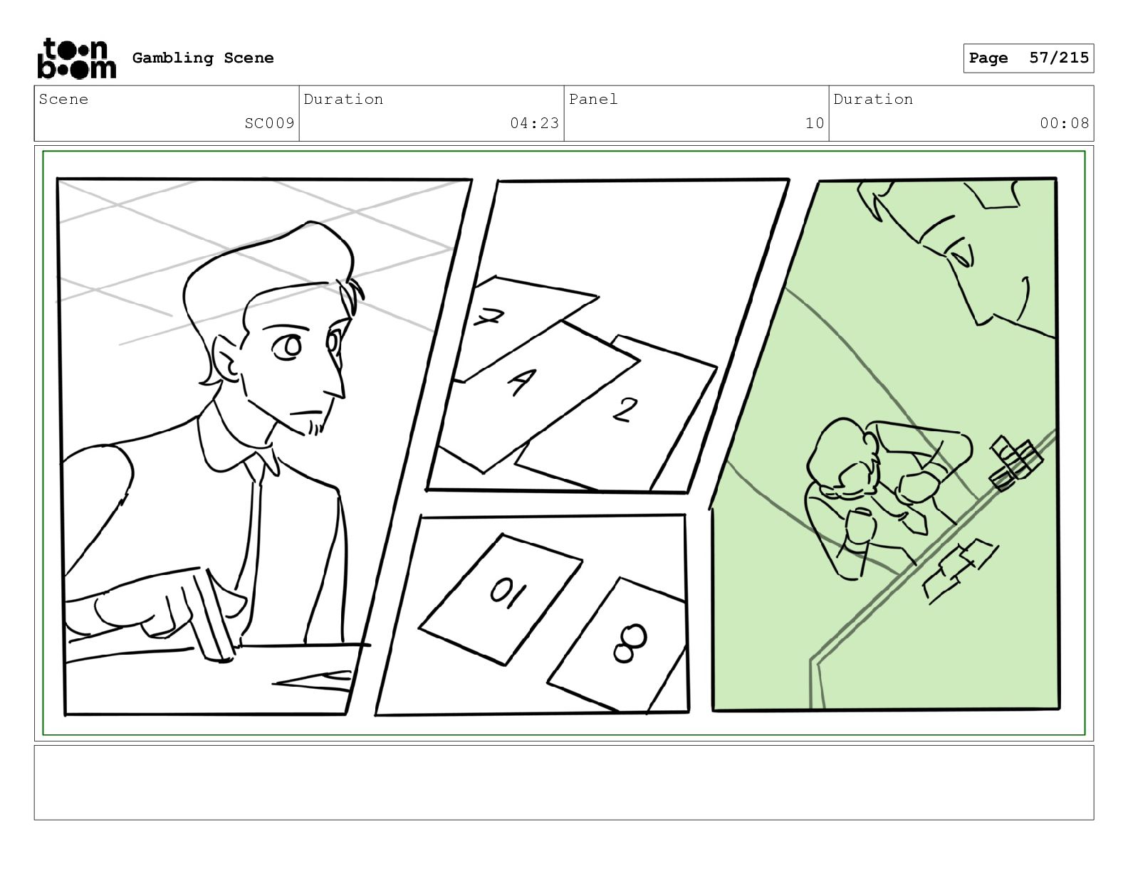 Scene SC001_A Duration 03:23 Panel 5 Duration 01:08 Gambling Scene