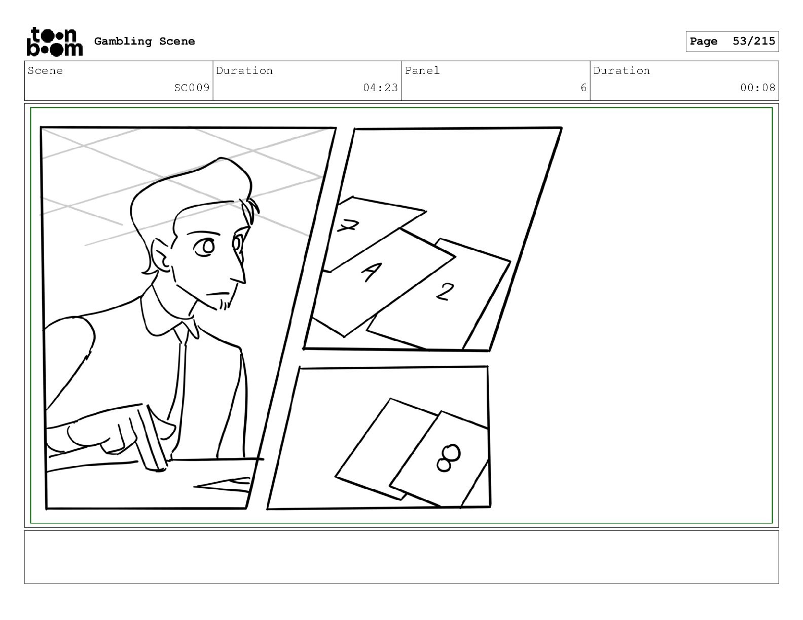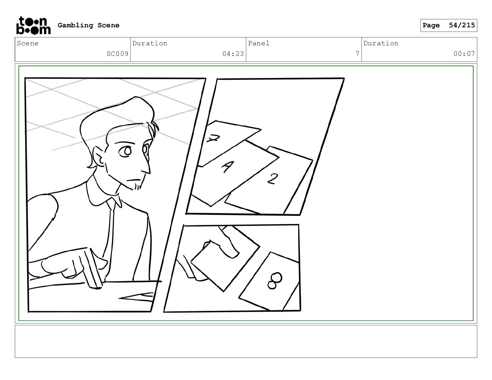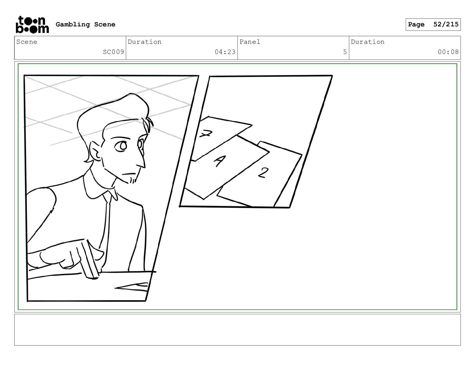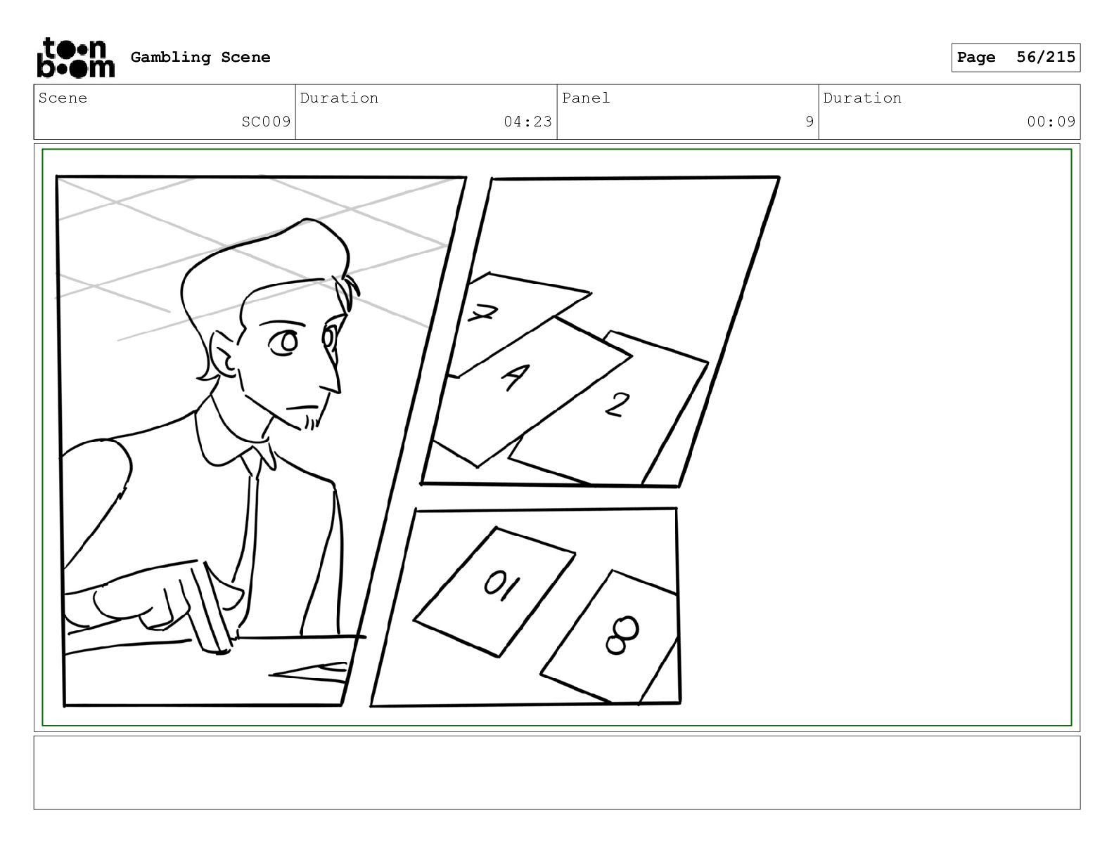 Scene SC033_A Duration 02:16 Panel 2 Duration 00:09 Gambling Scene