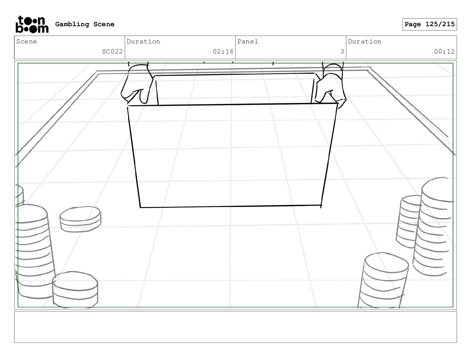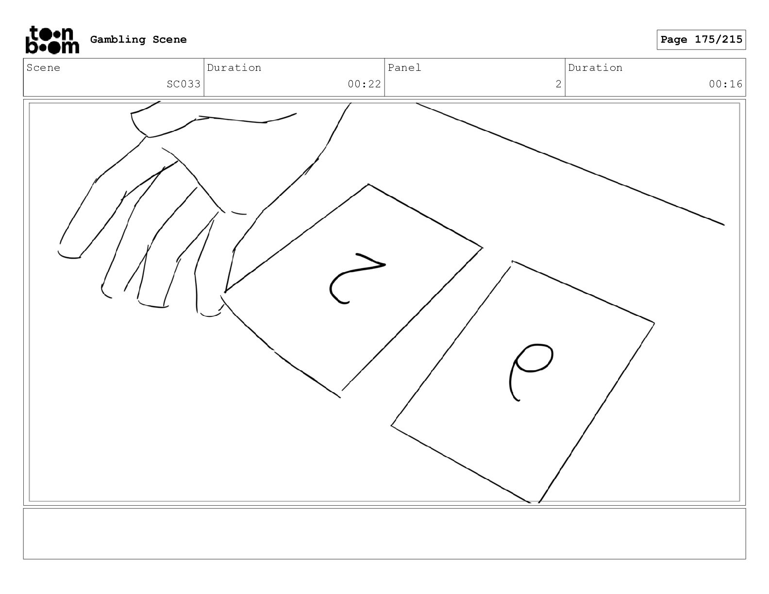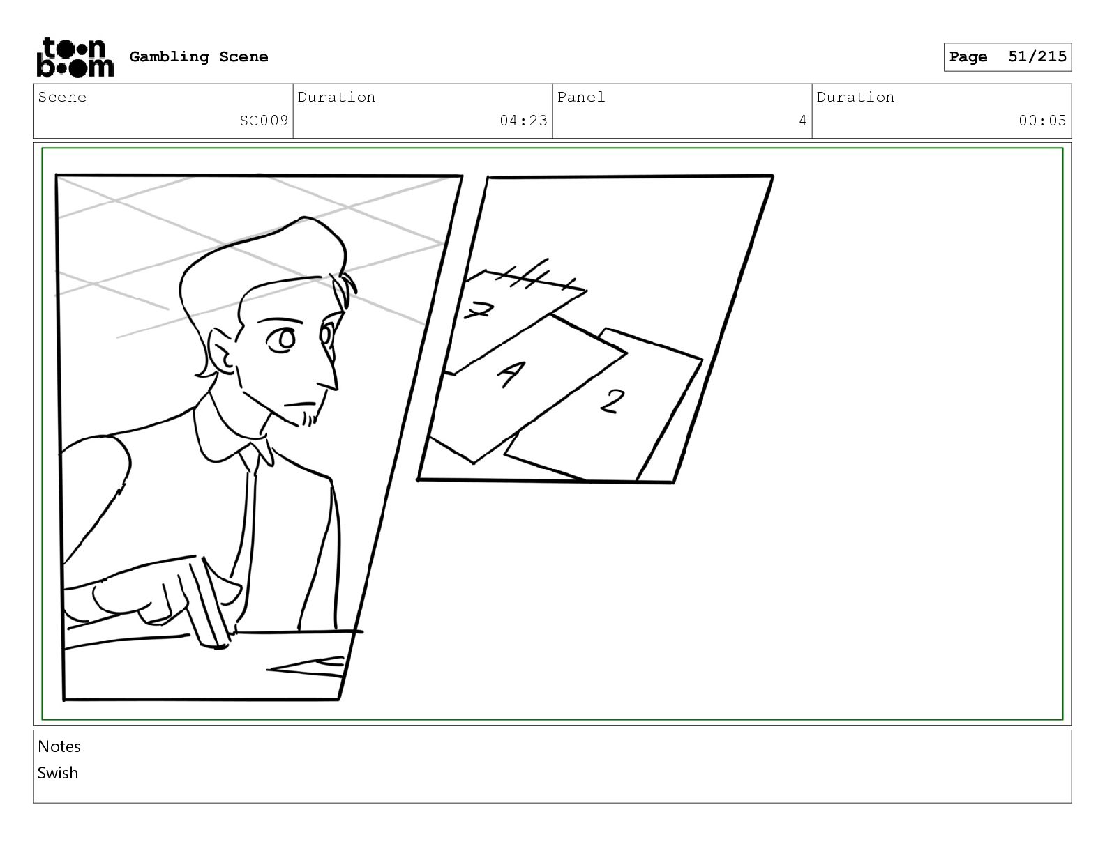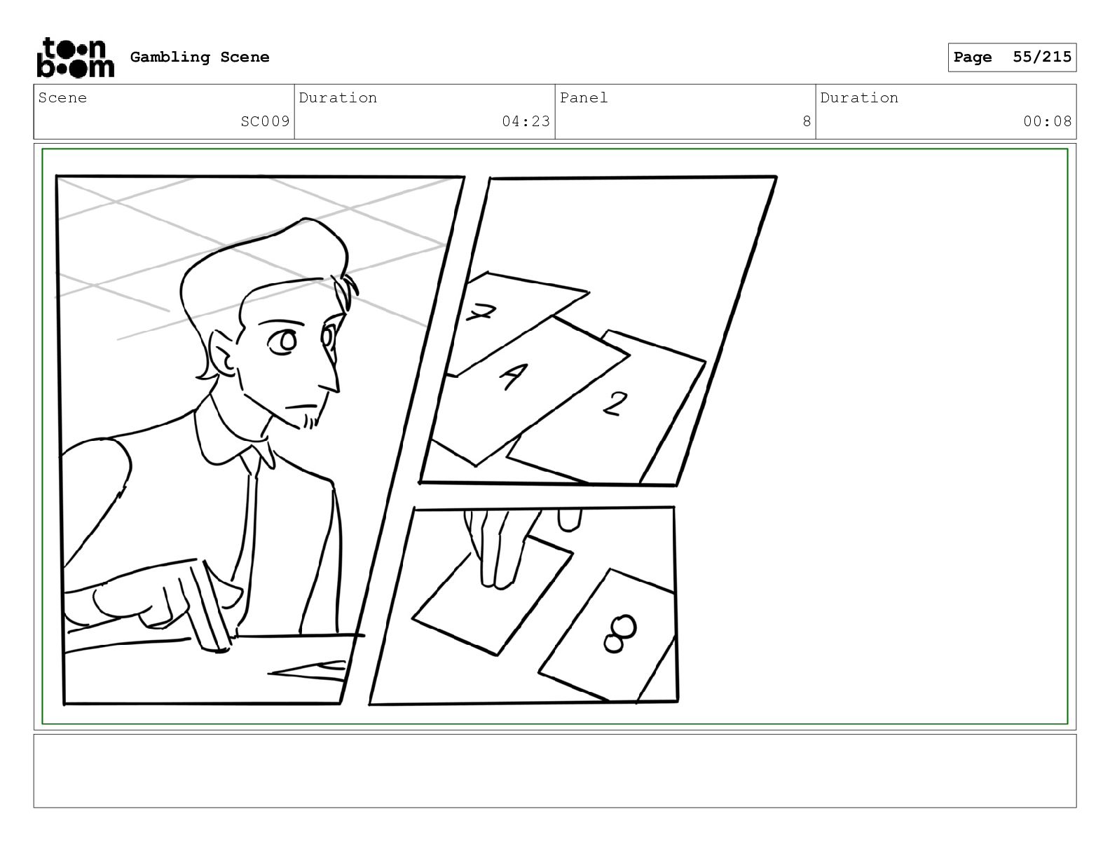 Scene SC033_A Duration 02:16 Panel 2 Duration 00:09 Gambling Scene