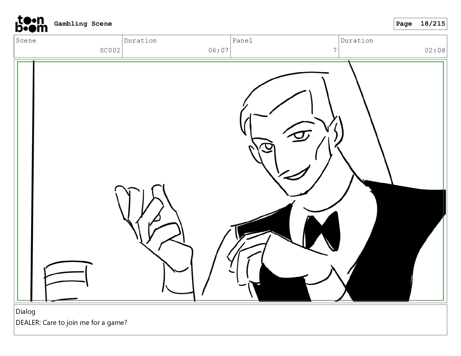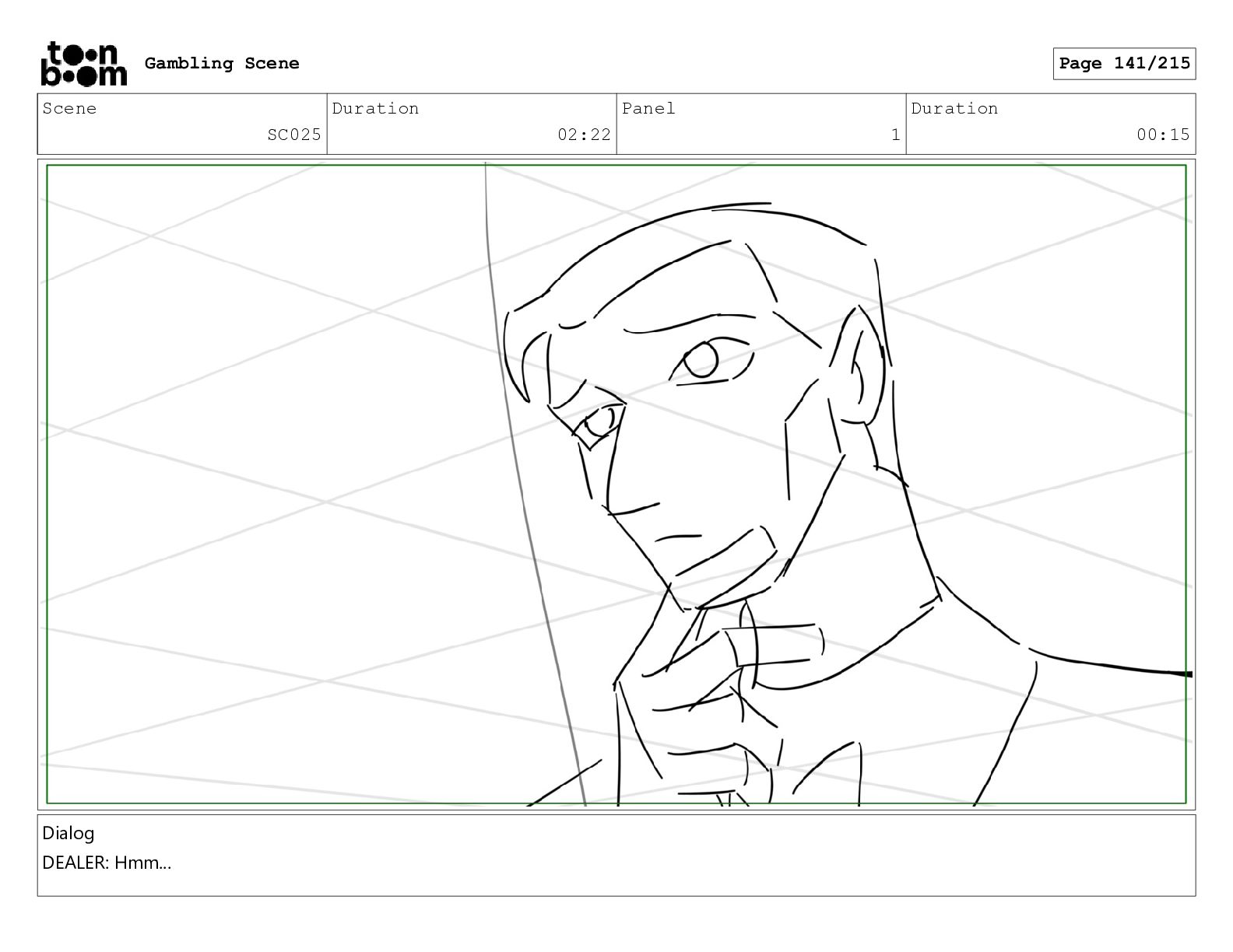Scene SC025 Duration 02:22 Panel 1 Duration 00:15 Dialog DEALER: