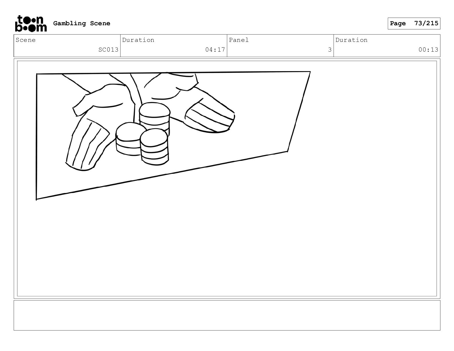 Scene SC026 Duration 06:13 Panel 13 Duration 00:10 Gambling Scene