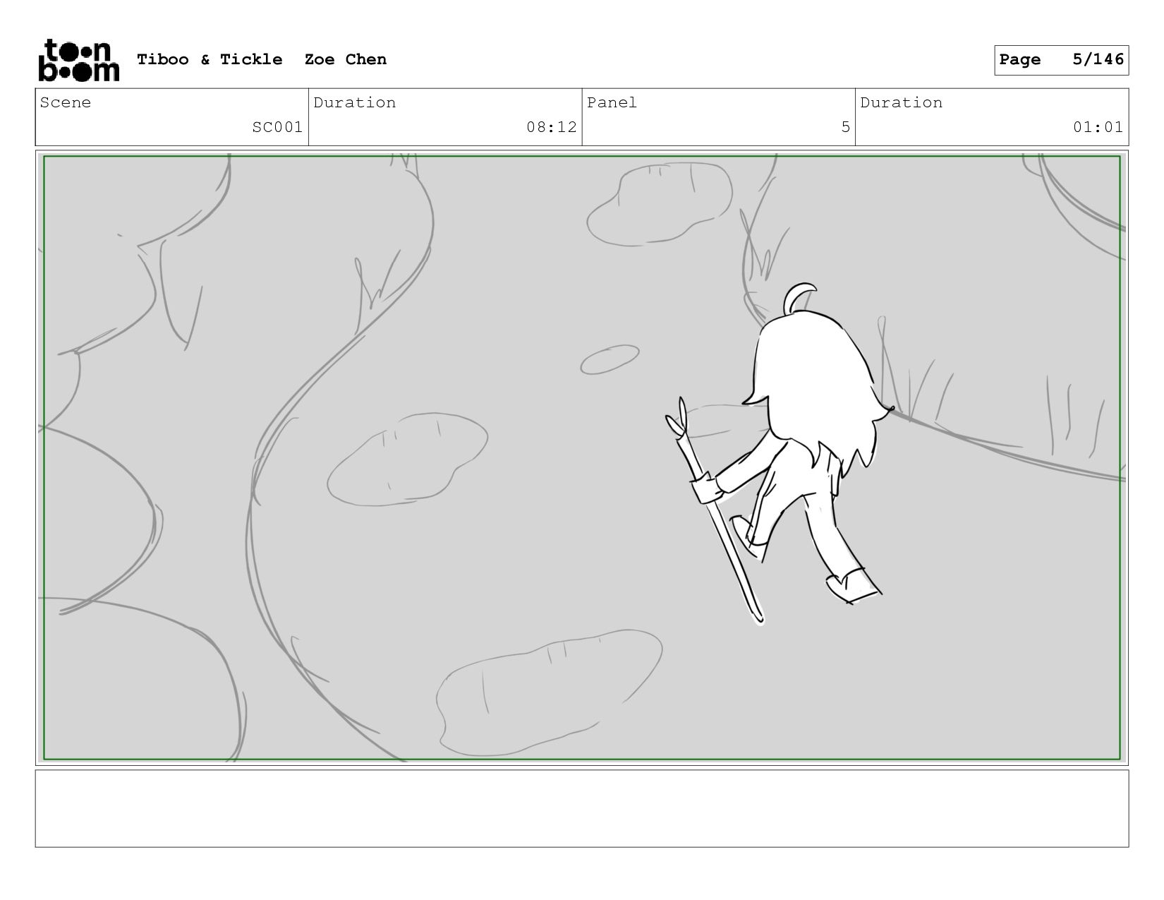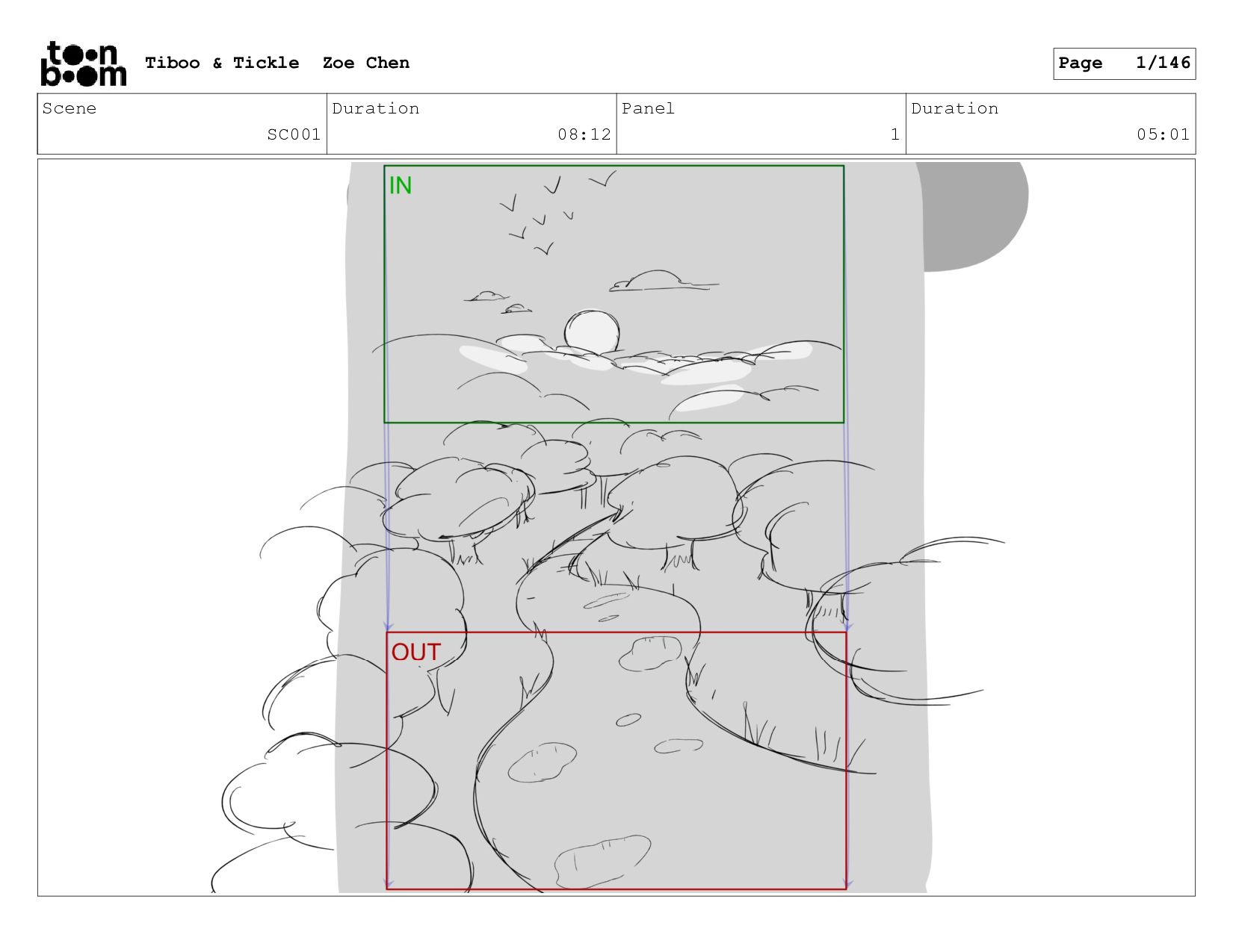 Scene SC001 Duration 08:12 Panel 5 Duration 01:01 Tiboo &