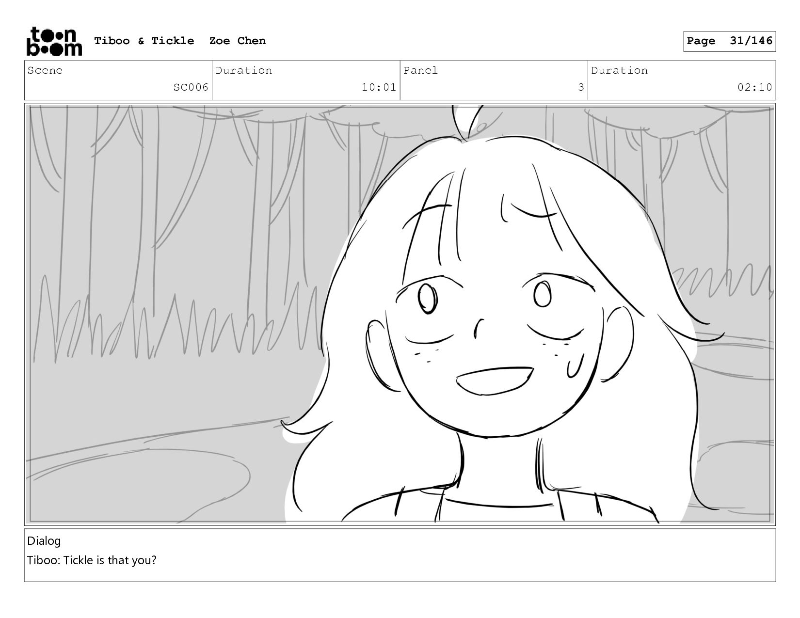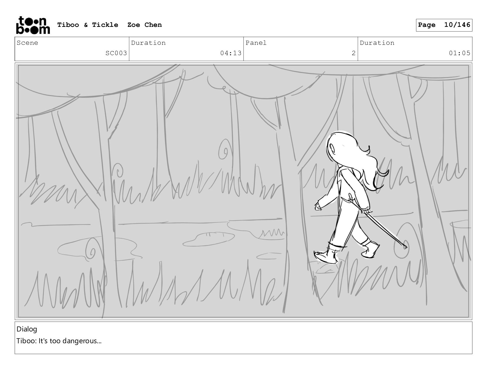 Scene SC003 Duration 04:13 Panel 2 Duration 01:05 Dialog Tiboo: