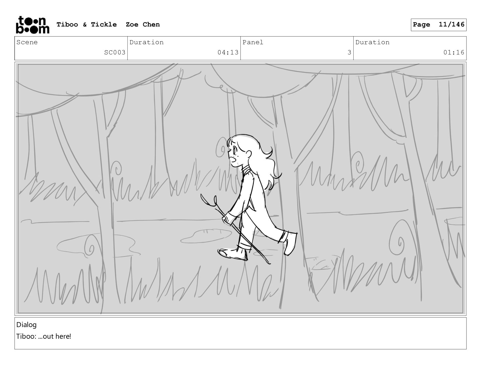 Scene SC003 Duration 04:13 Panel 3 Duration 01:16 Dialog Tiboo: