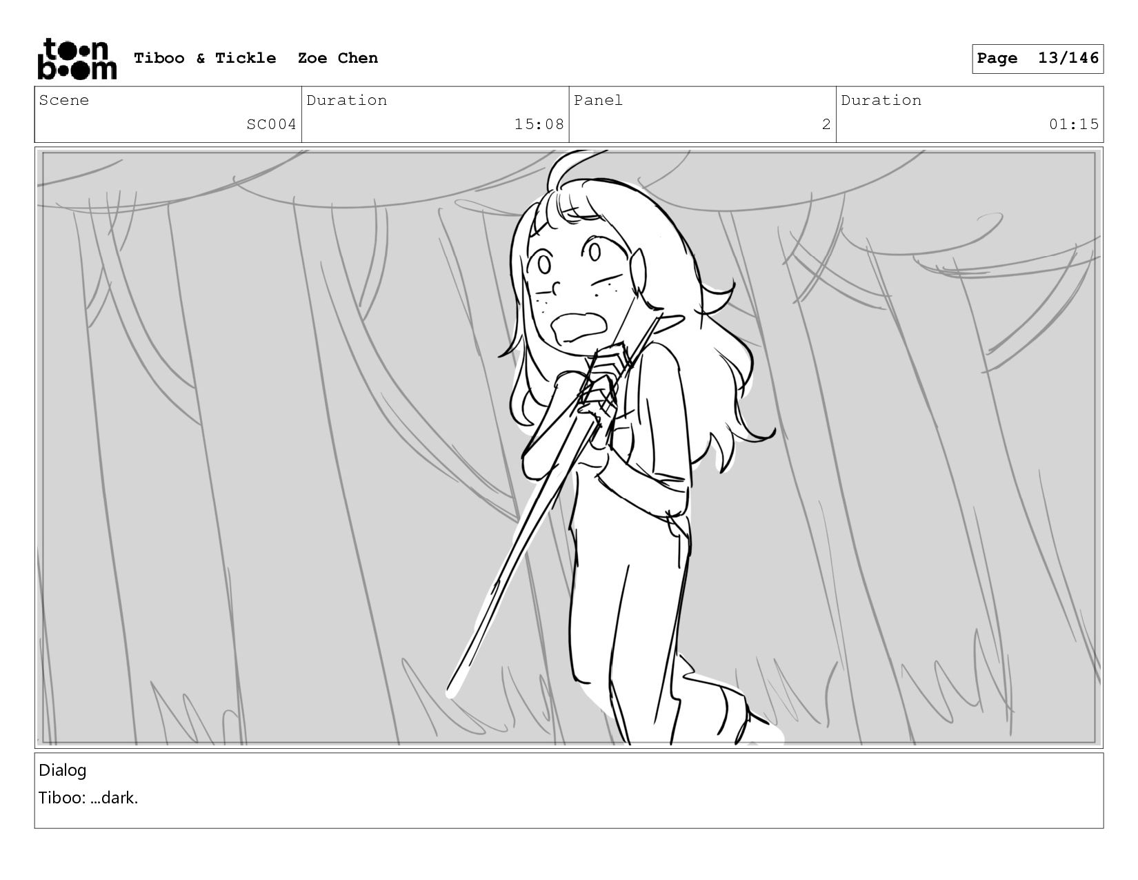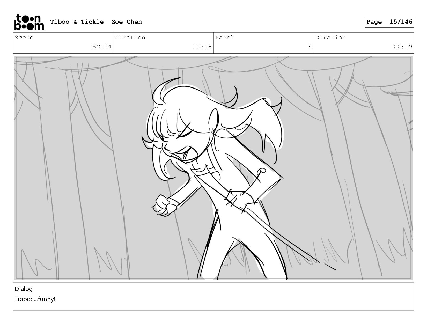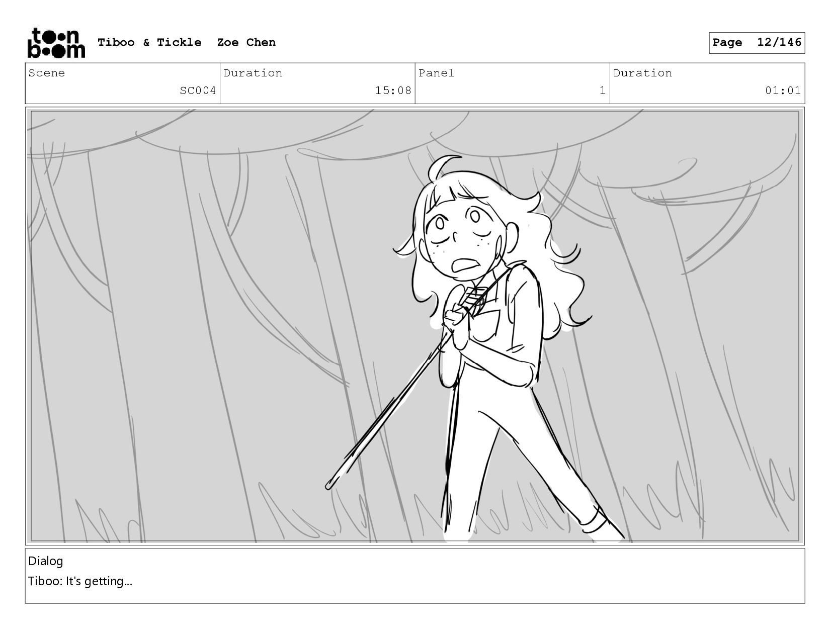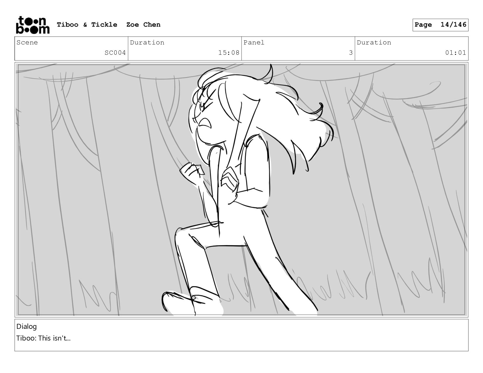 Scene SC004 Duration 15:08 Panel 1 Duration 01:01 Dialog Tiboo: