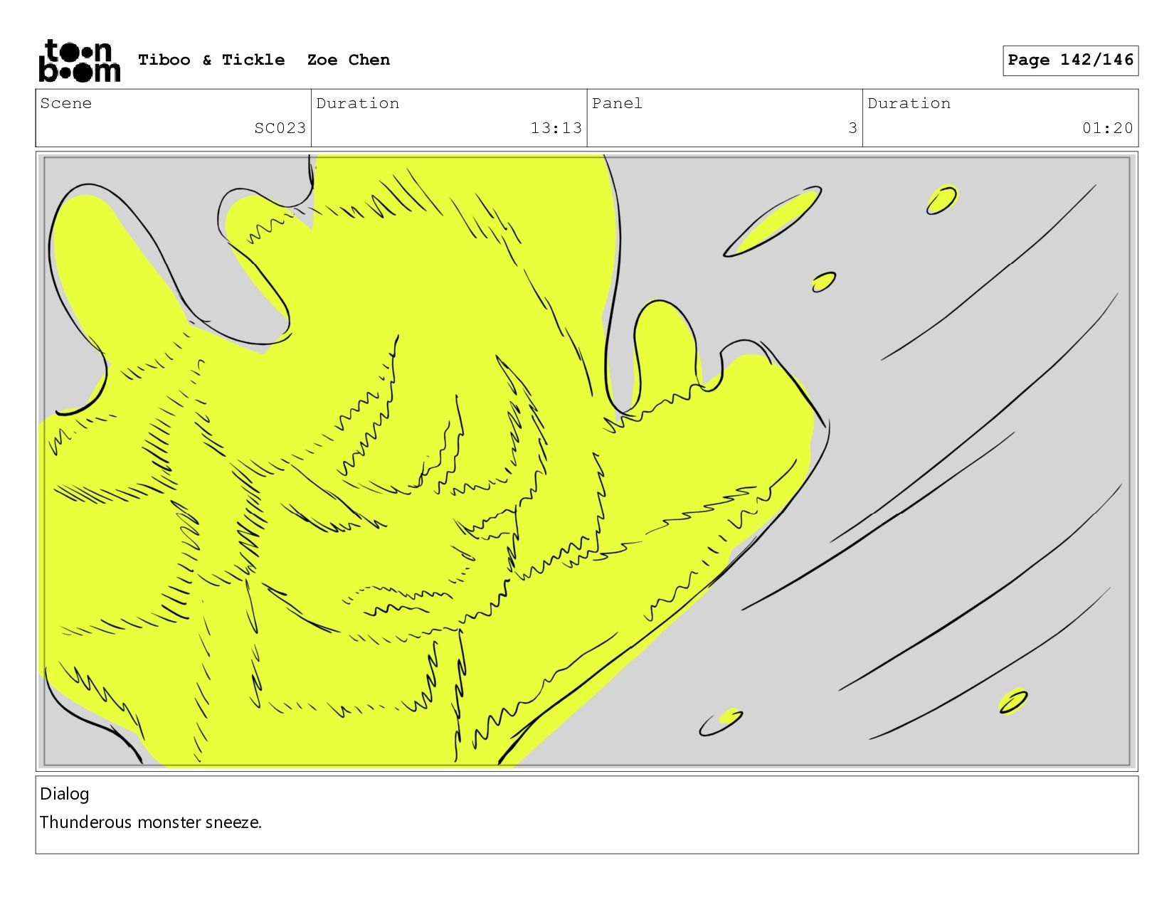 Scene SC023 Duration 13:13 Panel 3 Duration 01:20 Dialog Thunderous