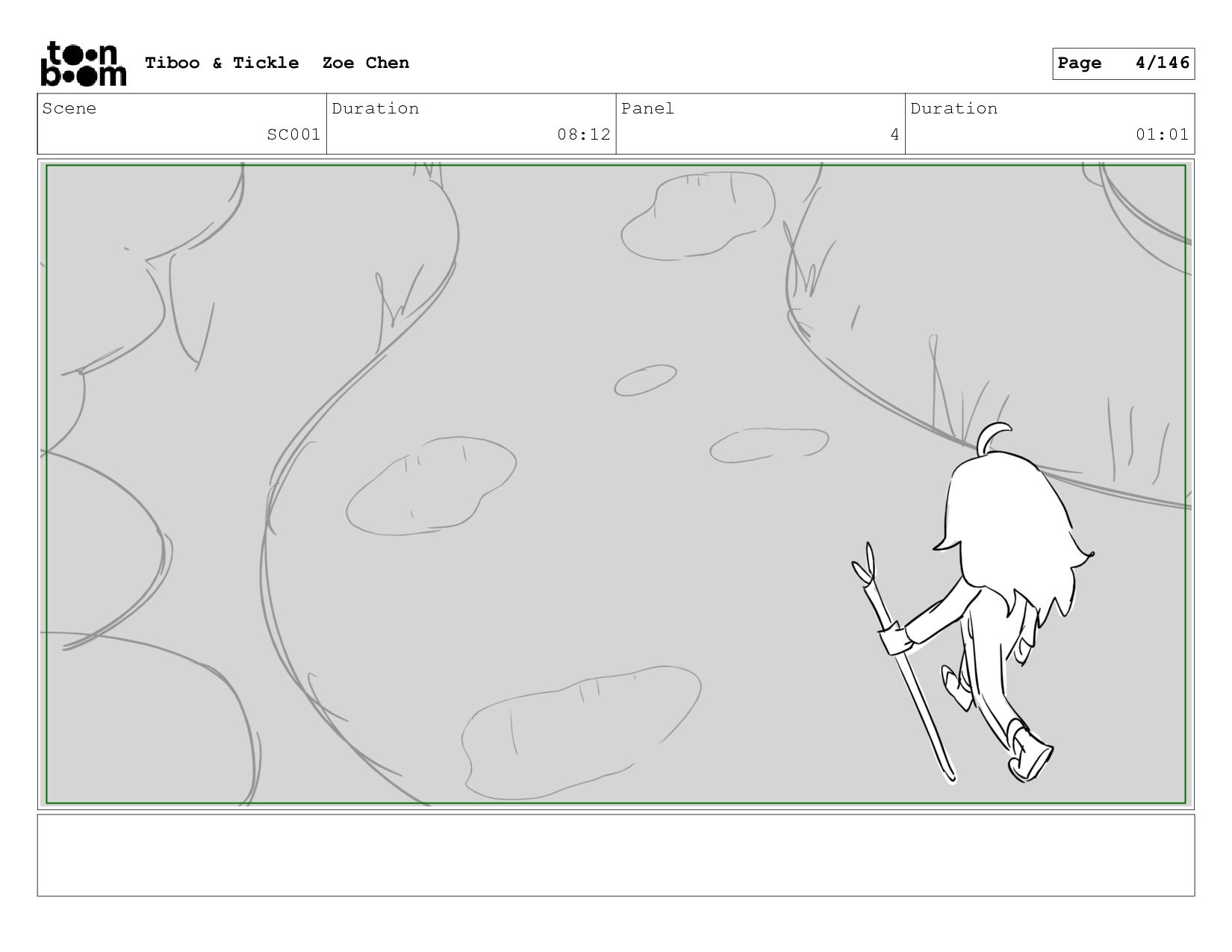 Scene SC001 Duration 08:12 Panel 4 Duration 01:01 Tiboo &