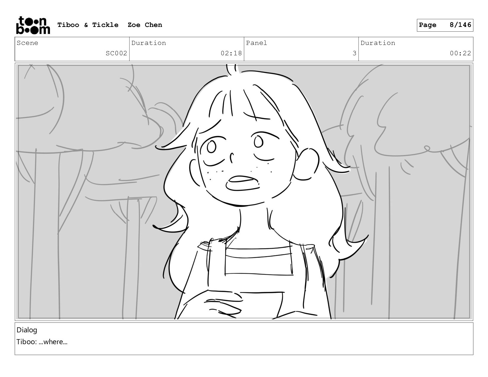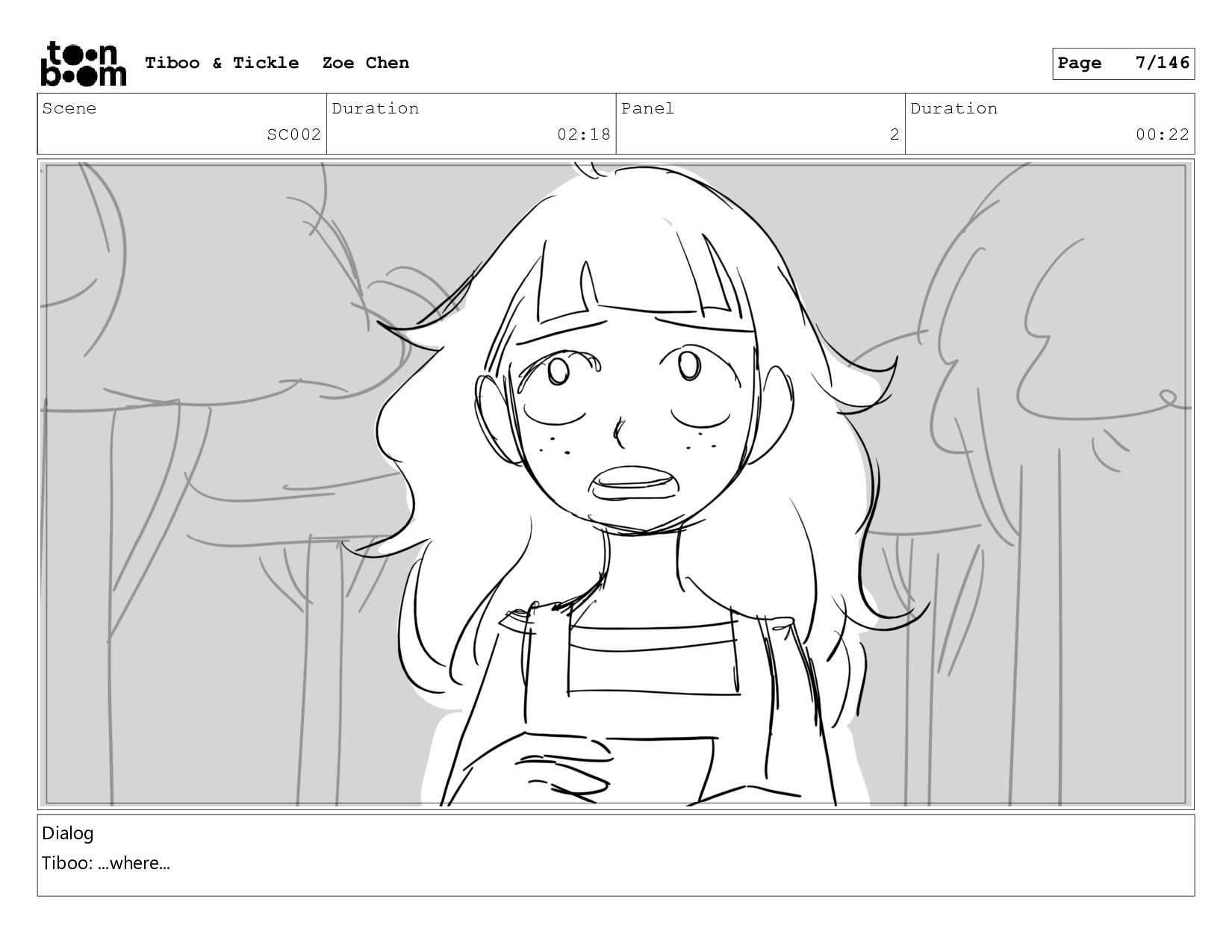Scene SC002 Duration 02:18 Panel 2 Duration 00:22 Dialog Tiboo:
