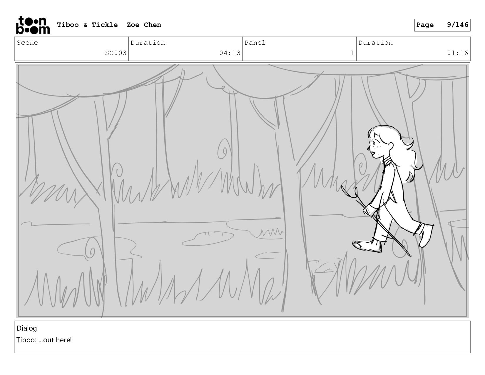Scene SC003 Duration 04:13 Panel 1 Duration 01:16 Dialog Tiboo: