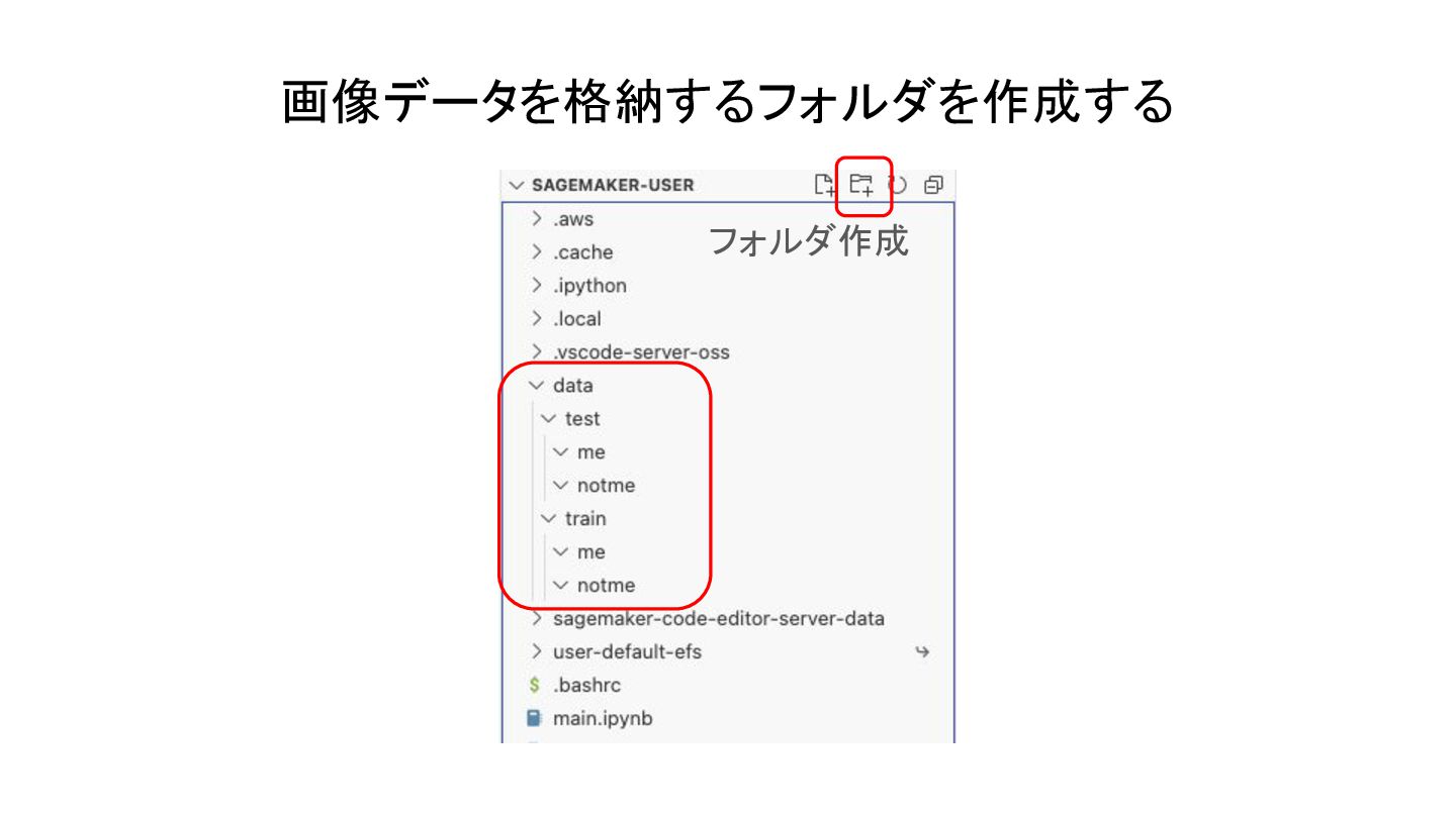 データセットを作る data/test : テスト用の画像データ - me, notmeでそれぞれ4枚ずつ選びましょう data/train : トレーニング用の画像データ