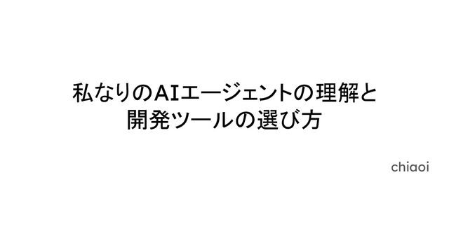 私なりのAIエージェントの理解と 開発ツールの選び方 chiaoi