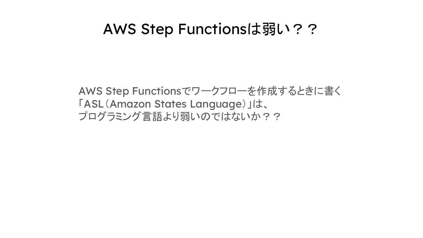 AWS Step Functionsは弱い?? AWS Step Functionsでワークフローを作成するときに書く 「ASL(Amazon States Language)」は、 プログラミング言語より弱いのではないか??
