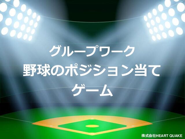 2 株式会社HEART QUAKE 野球のポジション当てゲームとは 『野球のポジション当てゲーム』は チームで協力して 1つの回答を導き出す ことを目的とした 協力型の論理ゲーム です。