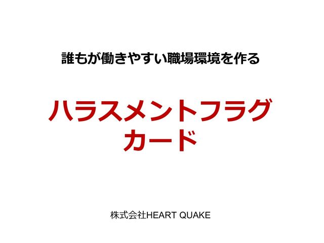 ハラスメント研修で使えるカードゲーム「ハラスメントフラグカード」の説明資料です。 ハラスメントフラグではハラスメントについてのお互いの認識のズレを見える化し、グレーゾーンについて対話する研修となります。